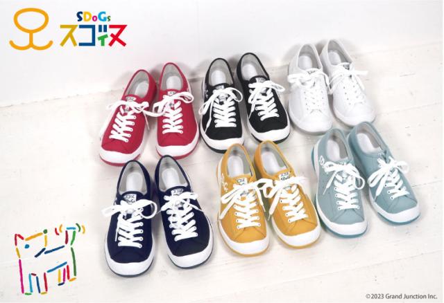 カジュアルで履きやすい軽量スニーカー。ロゴがポイントのスゴイヌを象徴するデザインです。 裏地は抗菌防臭機能付きのメッシュ生地を使用。年間通して履きまわせる一足です。