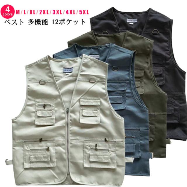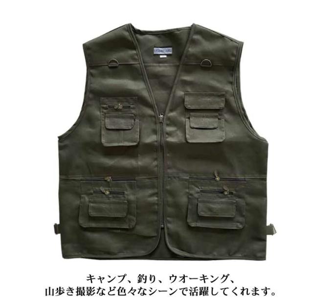 | 【ベスト】【12ポケット】【M-5XL】【4colors】【多機能】 大小合計12個のポケットが配置されたバッグいらずの収納力を誇るアウトドアベスト。 キャンプ、釣り、ウオーキング、山歩き撮影など色々なシーンで活躍してくれます。 ミリタリーベストをベースに現代的なデザインに落とし込んだユーティリティ性の高いポケットが特徴のアイテム。 ナイロン、ポリエステルの生地を使った、吸湿性、速乾性、耐磨耗性な素材となります。 メンズだけでなく、レディース、ペアでも着られるユニセックスデザインです。 これはもう手放せない春夏の一品です!アウトドアから散歩まで! | |