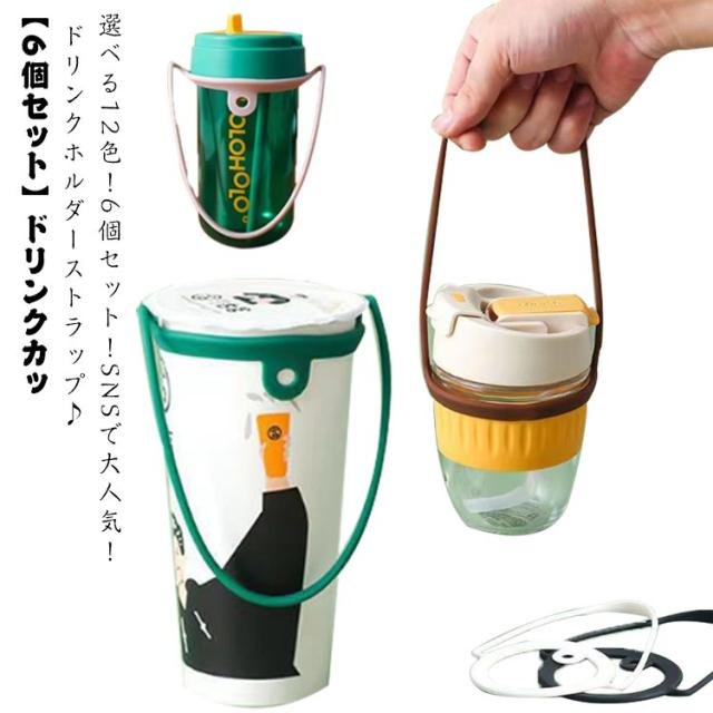【6個セット】 ドリンクカップホルダー ドリンクホルダー カップホルダー ドリンク ホルダー ストラップ ドリンクストラップ 持ち運び 複数 テイクアウト ドリンク ドリンクホルダー 持ち歩き シリコン製 おしゃれ 可愛い インスタ映え