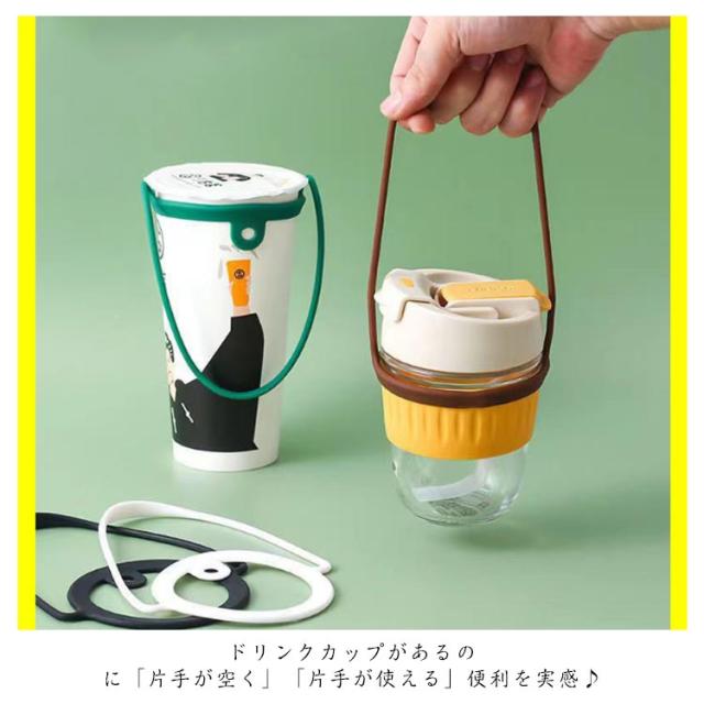 | 選べる12色!6個セット!SNSで大人気! ドリンクホルダーストラップ♪ 話題の オシャレでかわいい 写真映えする ドリンクカップがあるのに「片手が空く」「片手が使える」便利を実感♪ コンビニ カフェでのテイクアウトカップをオシャレに持ち歩ける♪ ■お子様との散歩 ベビーカーがあるお出かけでも活躍 ベビーマグ ストローマグなどにドリンクストラップを装着し、ベビーカーのフックに着ければ必要な時だけ使えるドリンクホルダーに♪ ■シリコーンゴムだから使わない時はコンパクトに折りたたんでカバンに収納も◎ 仕事の休憩中などカフェに行く際にポケットにストラップをそのまま入れて持ち運べます♪ ■扱いやすいシリコーンゴムだから、汚れても水洗い 除菌シートなどでも簡単にお手入れ可能♪ シリコーンゴム素材のドリンクストラップなので、おなかの部分が少し大きくなったマグでも対応可能です。 ※ご利用頂くマグの大きさによってはご利用頂けないものもあります。 | |