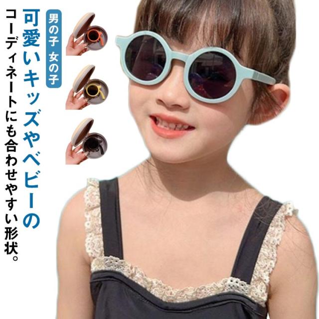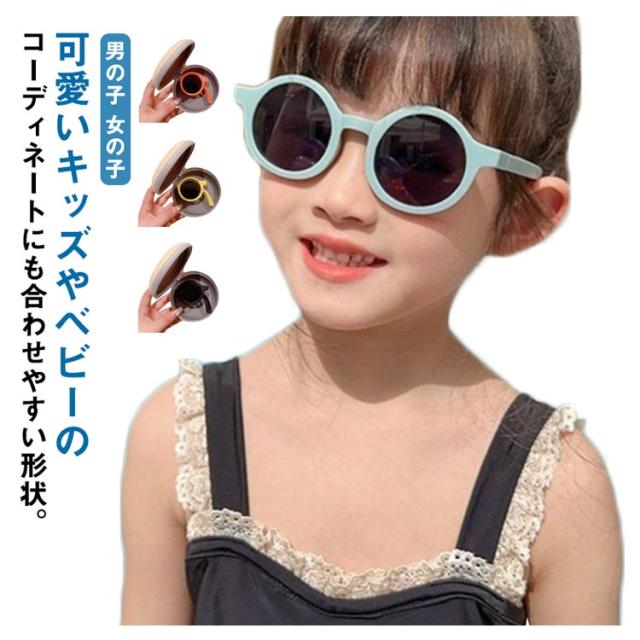 キッズ ベビー サングラス 折り畳み コンパクト 持ち運び ケース付き 軽量 無地 7色 男の子 女の子 ユニセックス 子供 子供服 雑貨 UV対策 韓国ファッション 紫外線カット かわいい ファッション小物 送料無料