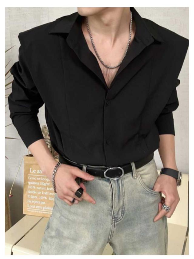 フェイクレイヤード シャツ メンズ カジュアルシャツ 春夏 長袖シャツ 羽織り レトロ 大きいサイズ 開襟シャツ 体型カバー 韓国ファション ゆったり 大きいサイズ かっこいい M L XL 2XL