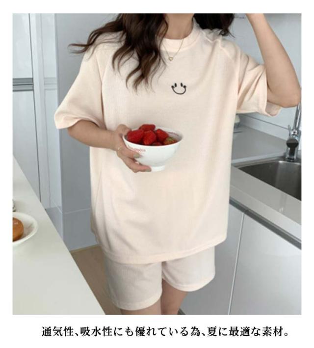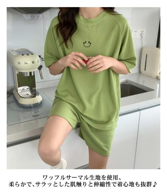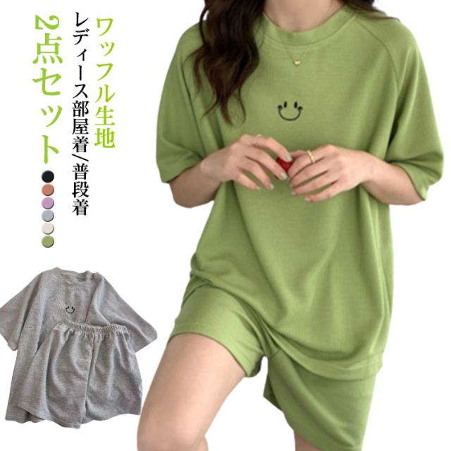 ルームウェア ワッフル 送料無料 ルームウェア ワッフル 夏 部屋着 2点セット 半袖 短パン 夏用 半ズボン パジャマ レディース 上下セット 部屋着 無地 カットソー生地 夏 ショートパンツ ナイトウェア 女子 学生 かわいい
