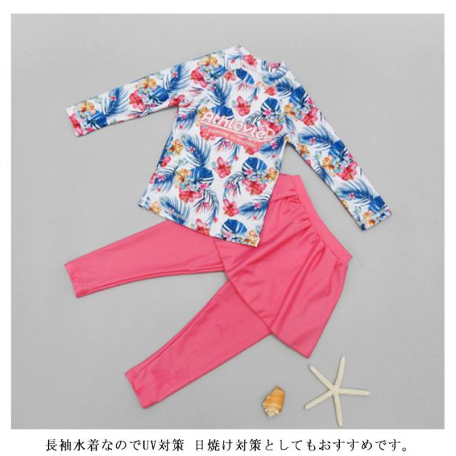 ッシュガード キッズ 上下セット ラッシュガード セット 女の子 水着 キッズ 水着 女の子 花柄 長袖 水着 2点セット 上下セット 女の子 セパレート 子供 スクール水着 吸水速乾 水泳授業 スイムウェア 女の子 スイミング 水遊び 子供 水着