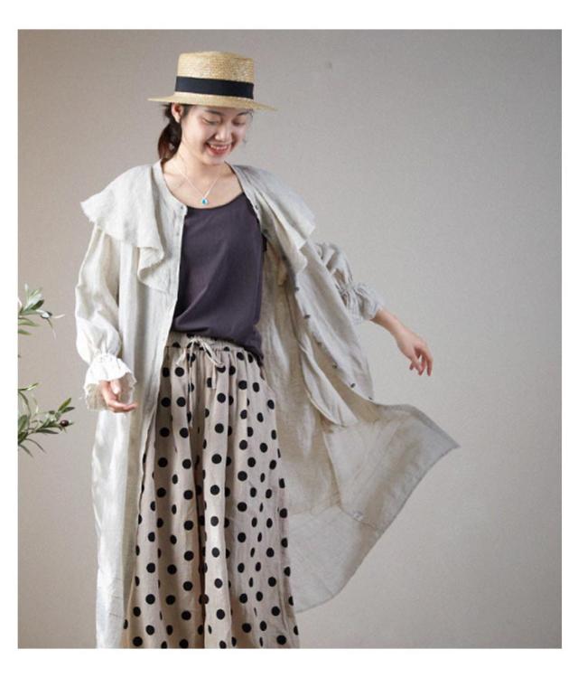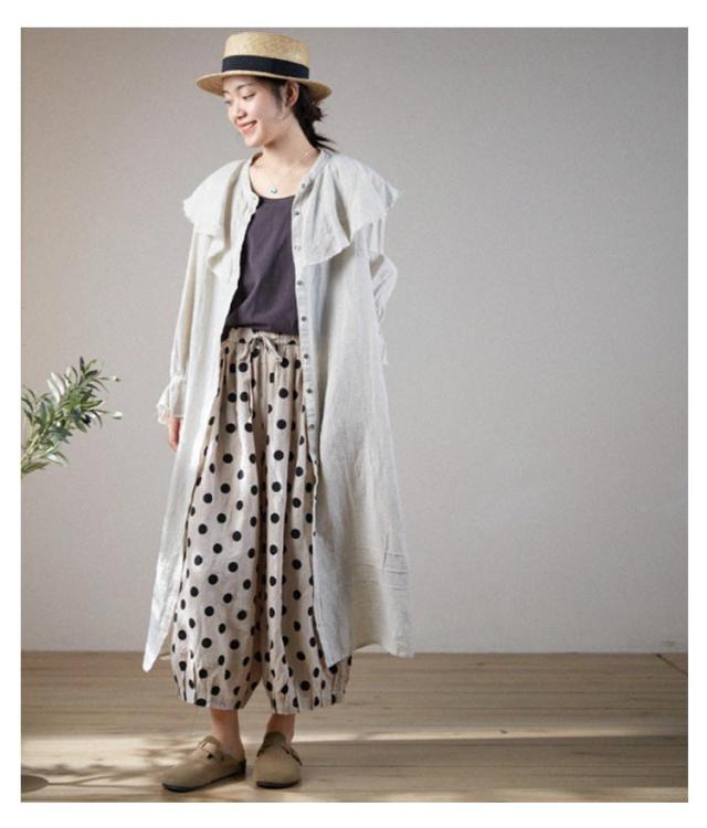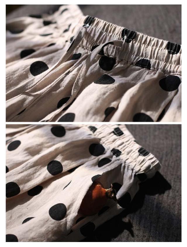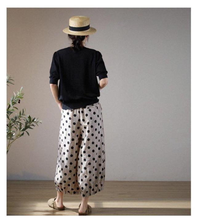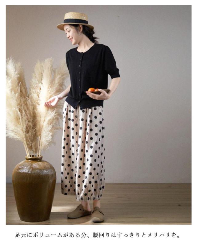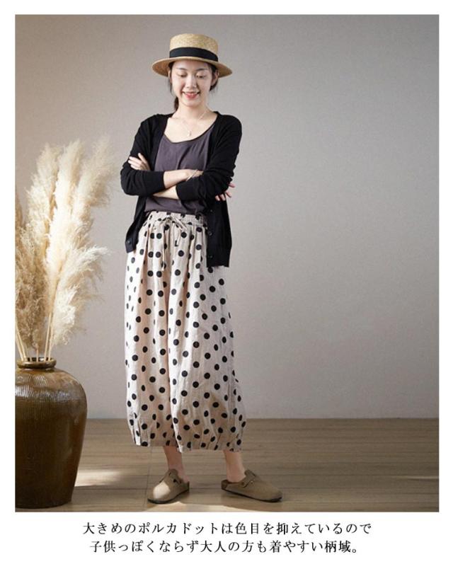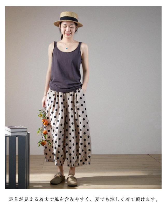 リネン パンツ レディース クロップドパンツ 綿麻 ワイドパンツ スカーチョ 水玉柄 ドット柄 7分丈 麻パンツ ガウチョ 春 夏 秋 リネン イージーパンツ サルエルパンツ 涼しい 吸汗速乾 おしゃれ 40代 50代 30代 母 ママ 【送料無料】