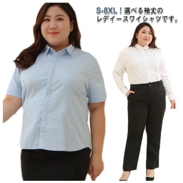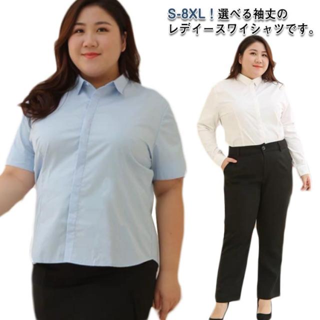 ワイシャツ 半袖 大きいサイズ 長袖 レディース シャツ ブラウス Yシャツ 白シャツ オフィス ビジネス リクルート 就活 開襟 スーツ インナー 事務服 制服 春 夏 秋 冬 ホワイト ブルー S M L XL 2XL 3XL 4XL 5XL 6XL 7XL 8XL