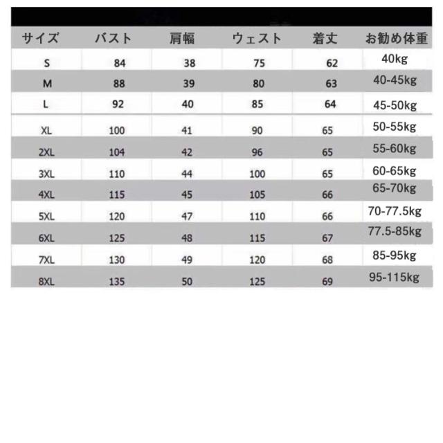 | サイズ | S M L XL 2XL 3XL 4XL 5XL 6XL 7XL 8XL |