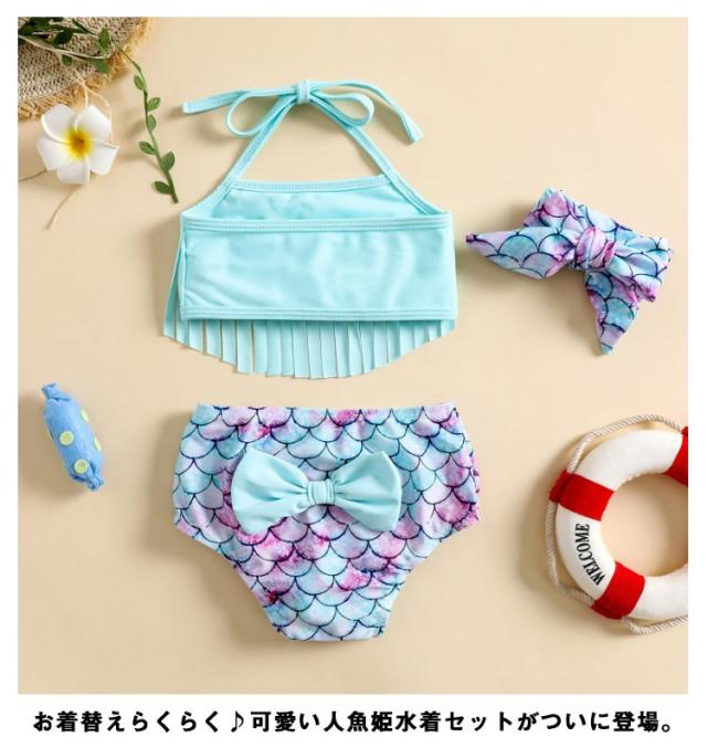 ベビー水着 人魚姫 マーメイド キッズ 水着 セパレート ビキニ 水着 女の子 水着 3点セット マーメイド 水着 セパレート キッズ 水着 上下セット タンキニ 水着 人魚 水着 キッズ 子供水着 撮影用 鱗模様 人魚姫 コスプレ 衣装 仮装 撮影用 送料無料