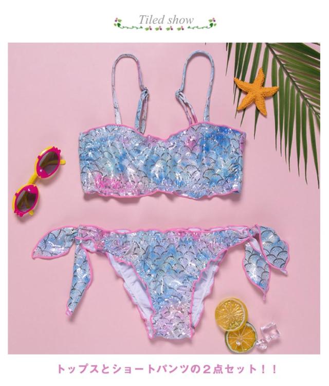 女の子 水着 2点セット マーメイド 水着 セパレート キッズ 水着 セパレート ビキニ 水着 キッズ 水着 上下セット 人魚姫 マーメイド タンキニ 水着 人魚 水着 キッズ 子供水着 撮影用 鱗模様 ジュニア 水着 人魚姫 コスプレ 衣装 仮装 撮影用 送料無料