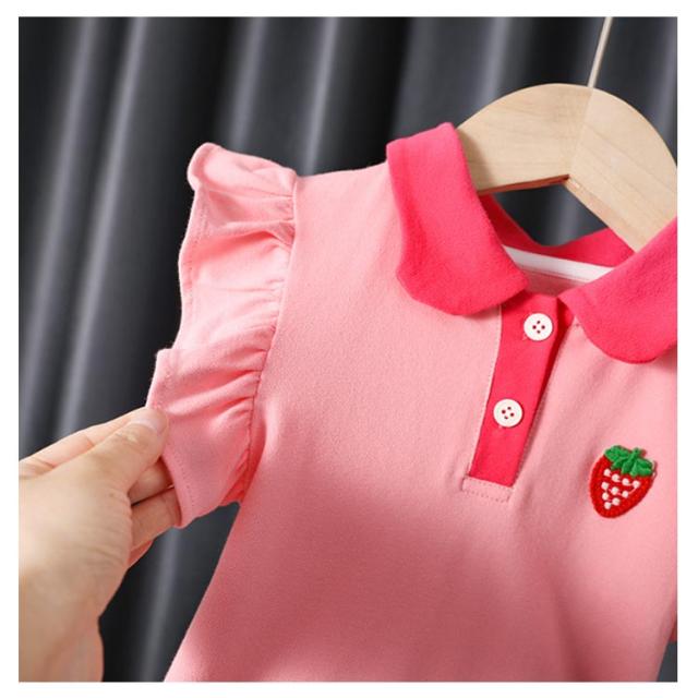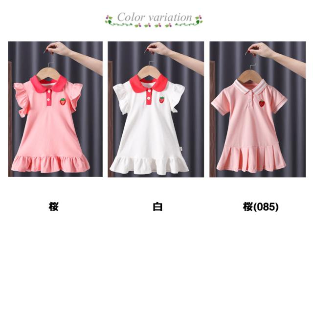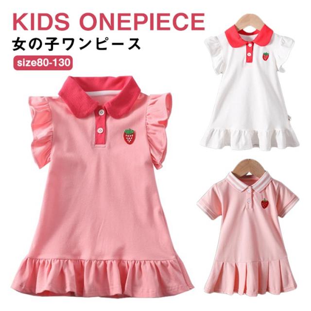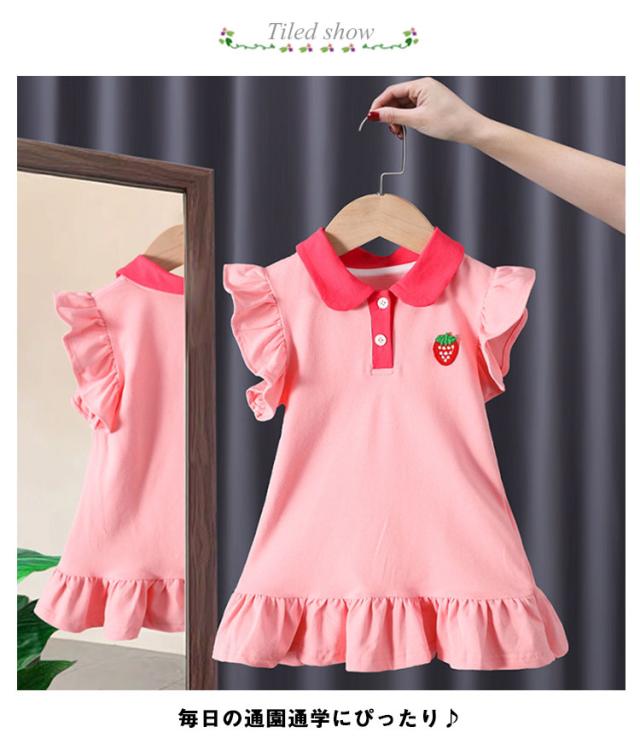 女の子 ワンピース イチゴ ワンピース フリルスリーブ 半袖 フレアワンピース 子供ワンピース ポロシャツ襟 ポロシャツ ワンピース ワンピース キッズ ワンピース 夏 ベビー ワンピース 女児 ガールズ フレア袖 夏ワンピース 送料無料