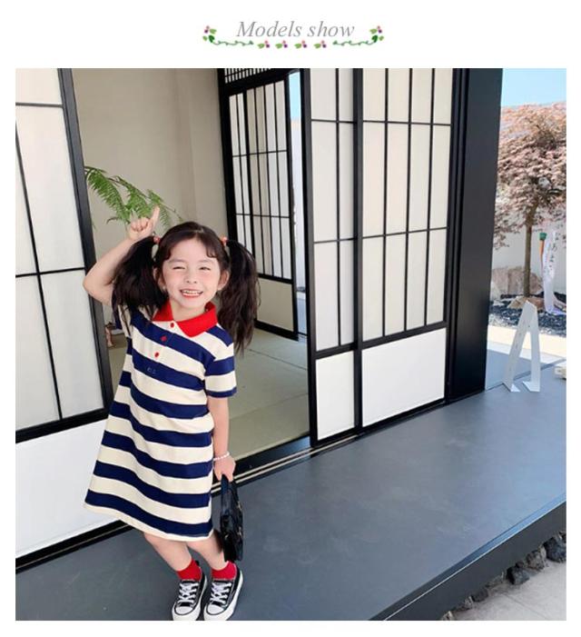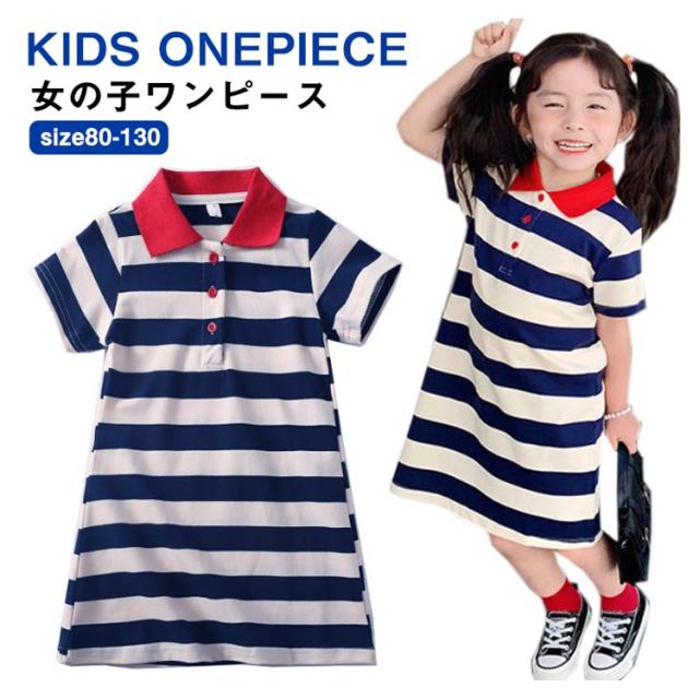 マーリン風 ボーダー柄 ワンピース Tシャツワンピース 夏ワンピース 女の子 ワンピース 半袖 ポロシャツ襟 ポロシャツ ワンピース フレアワンピース 子供ワンピース キッズ ワンピース 夏 送料無料