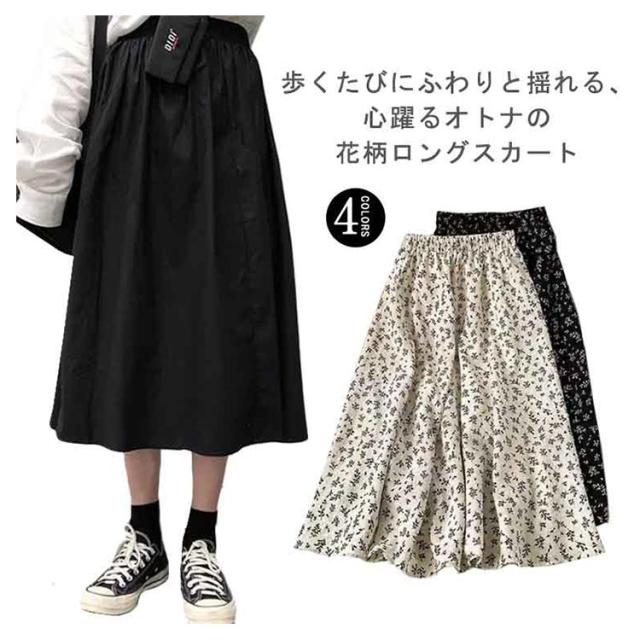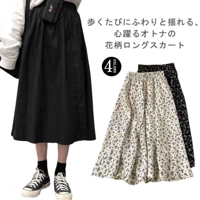 スカート ロング 小花柄スカート 花柄 レディース ボトムス ロング マキシ丈 美脚 きれいめ おしゃれ 膝下 ひざ下 Aライン 着?せ フレアスカート ウエストゴム フラワープリント 20代 30代 春 夏 秋 ゆったり 体型カバー 送料無料 大きいサイズ プレゼント