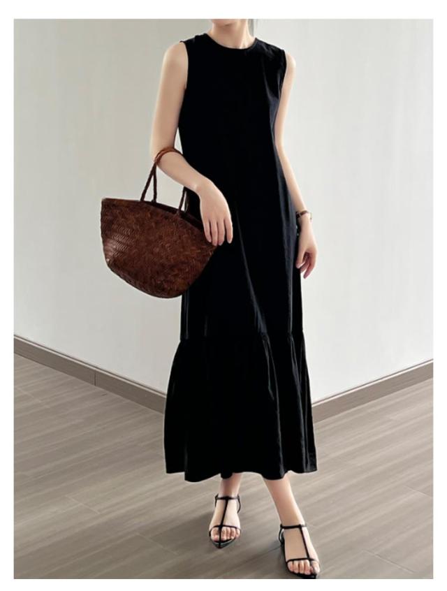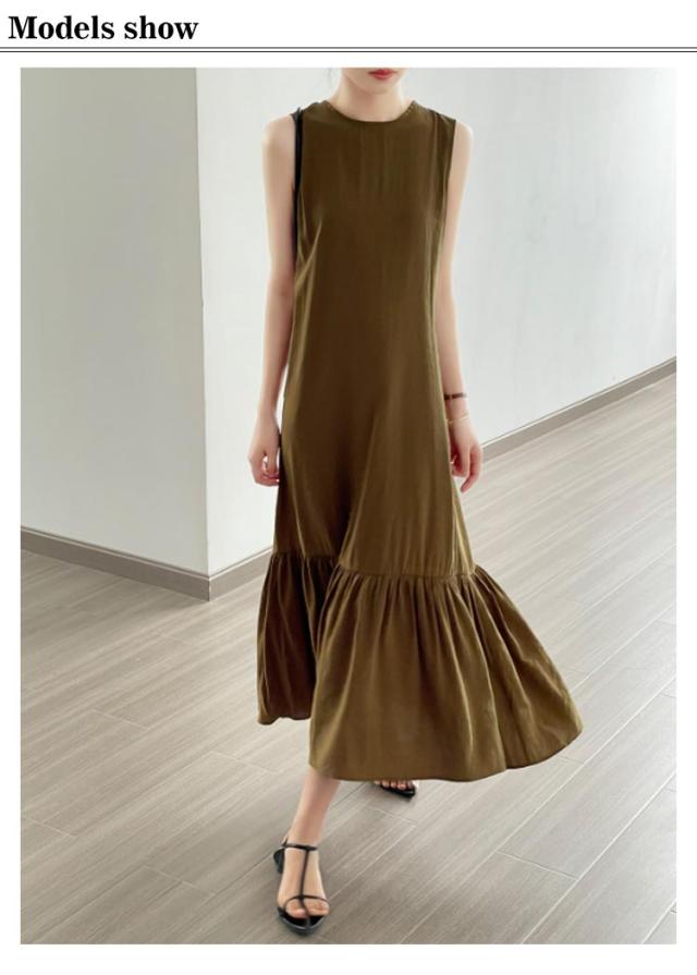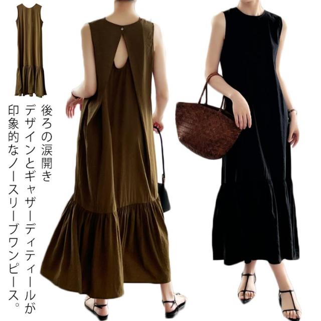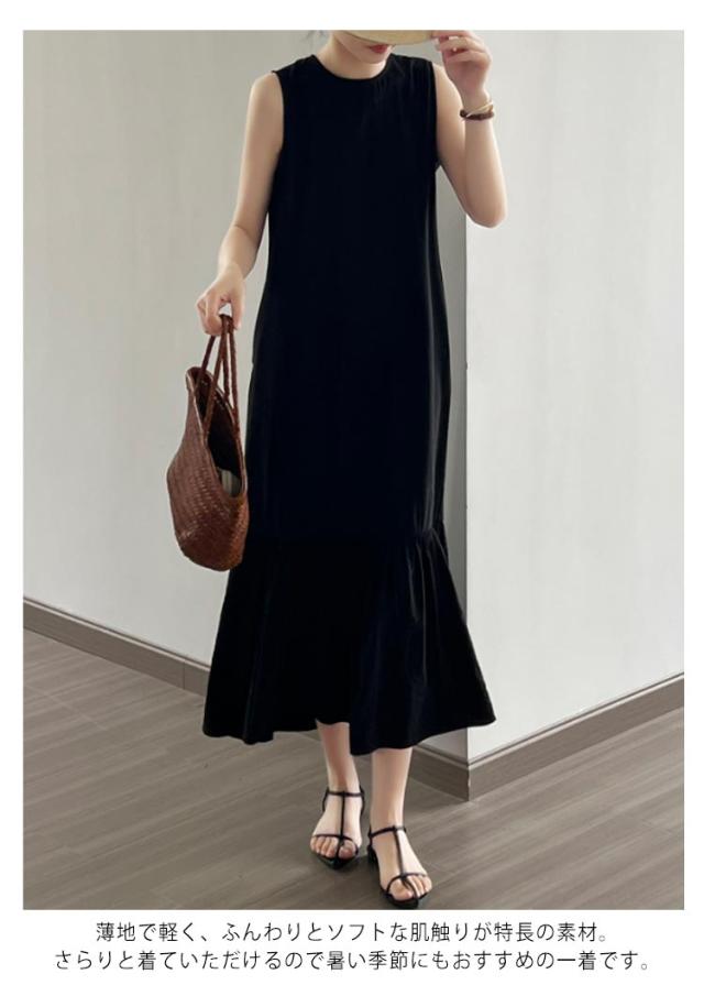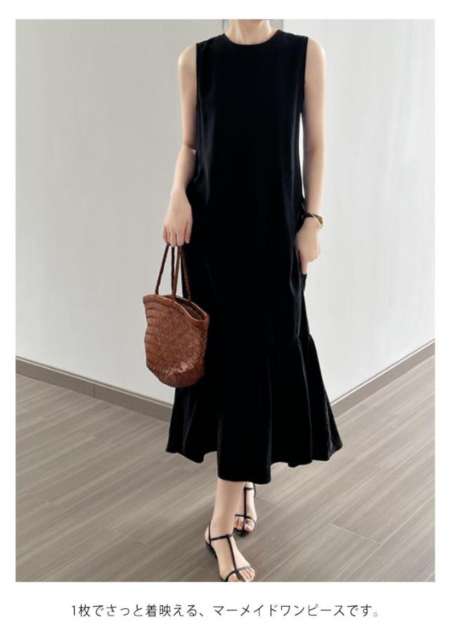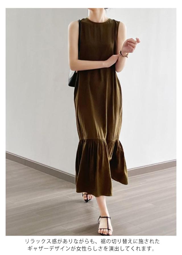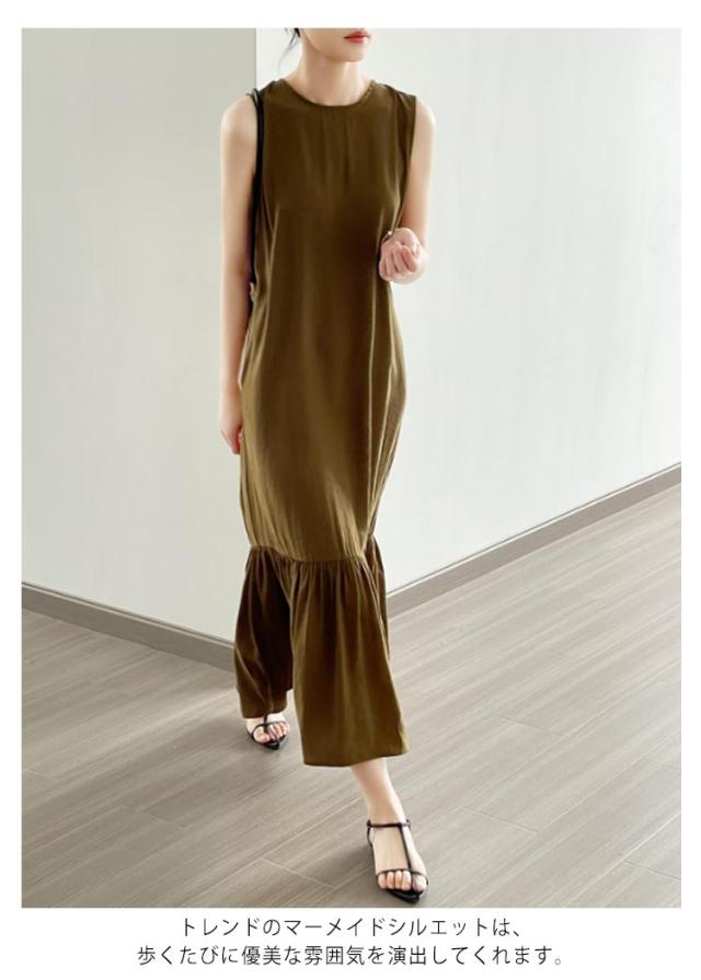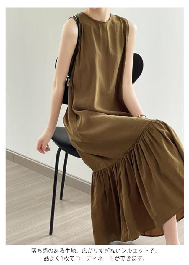 マーメイドワンピース レディース 春 夏 ノースリーブ ワンピース クルーネック ギャザー 切り替え ロングワンピース マキシ丈 涙開き ワンピース 袖なし マーメイド 無地 きれいめ カジュアル 着痩せ 上品 夏 春新作 春服 夏服 送料無料