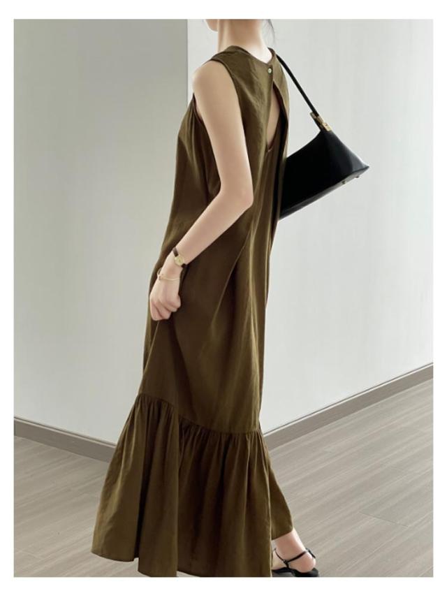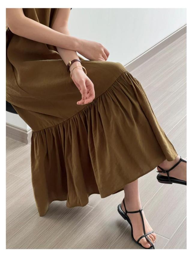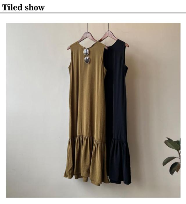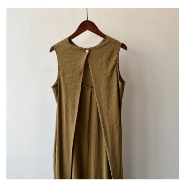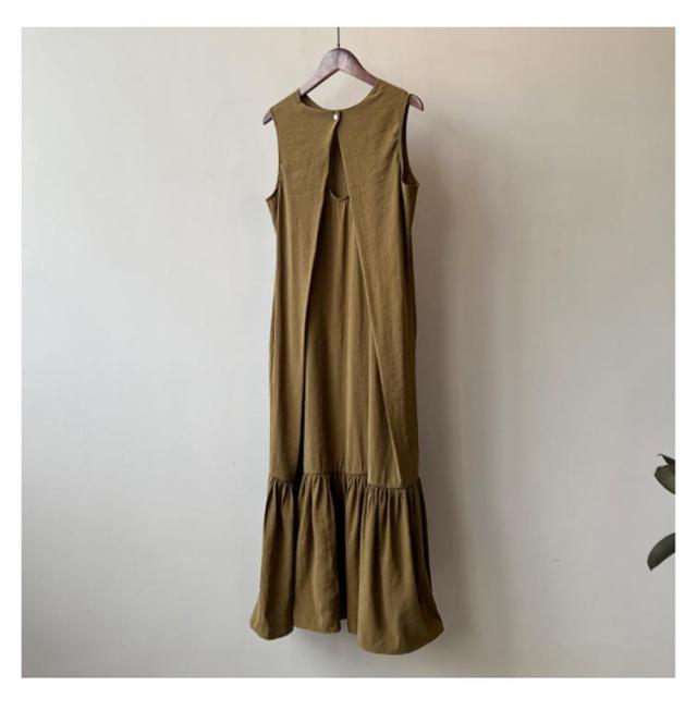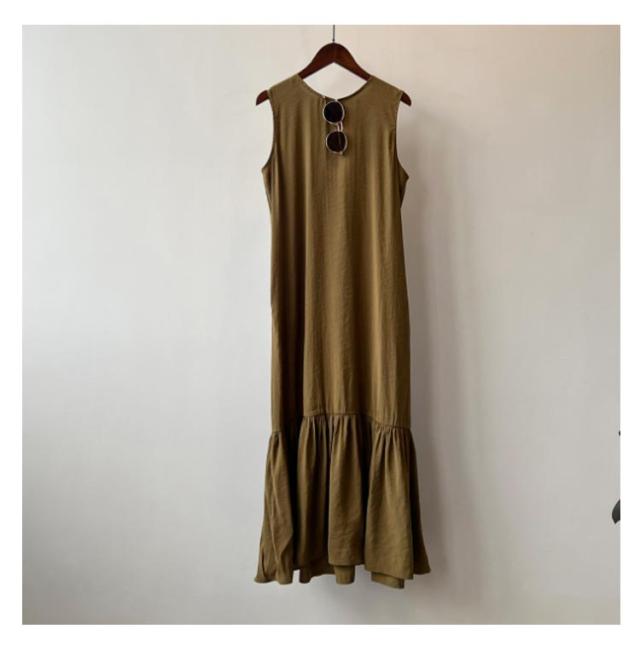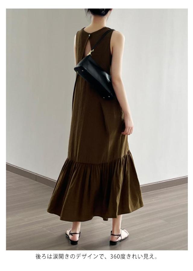 | 後ろの涙開きデザインとギャザーディティールが印象的なノースリーブワンピース。 トレンドのマーメイドシルエットは、歩くたびに優美な雰囲気を演出してくれます。 落ち感のある生地、広がりすぎないシルエットで、品よく1枚でコーディネートができます。 リラックス感がありながらも、裾の切り替えに施されたギャザーデザインが女性らしさを演出してくれます。 後ろは涙開きのデザインで、360度きれい見え。 薄地で軽く、ふんわりとソフトな肌触りが特長の素材。さらりと着ていただけるので暑い季節にもおすすめの一着です。 1枚でさっと着映える、マーメイドワンピースです。 | |