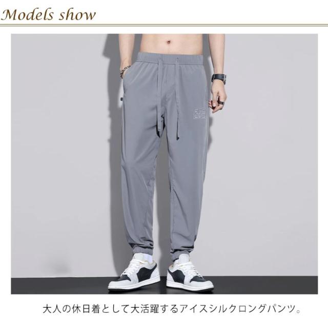 接触冷感 パンツ メンズ アイスシルクパンツ 送料無料 ジョガーパンツ アイスシルク ロングパンツ ジョガーパンツ メンズチノ チノパン アイス シルク パンツ カジュアルパンツ メンズ 夏 超薄 涼しい ストレッチパンツ 速乾
