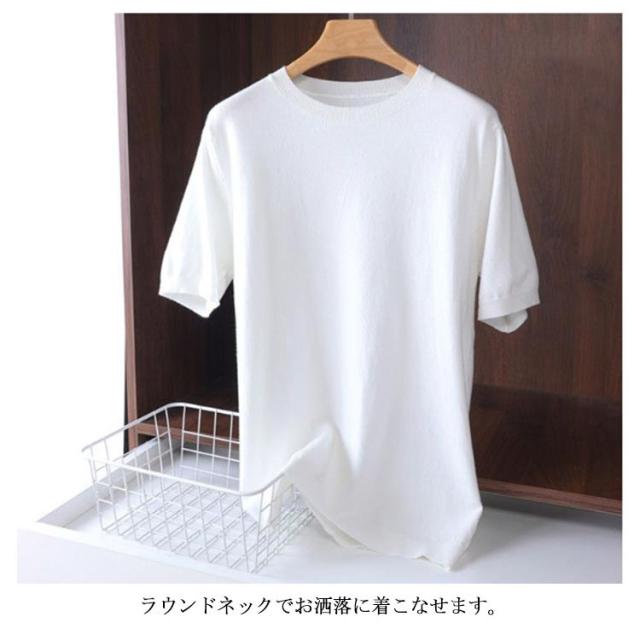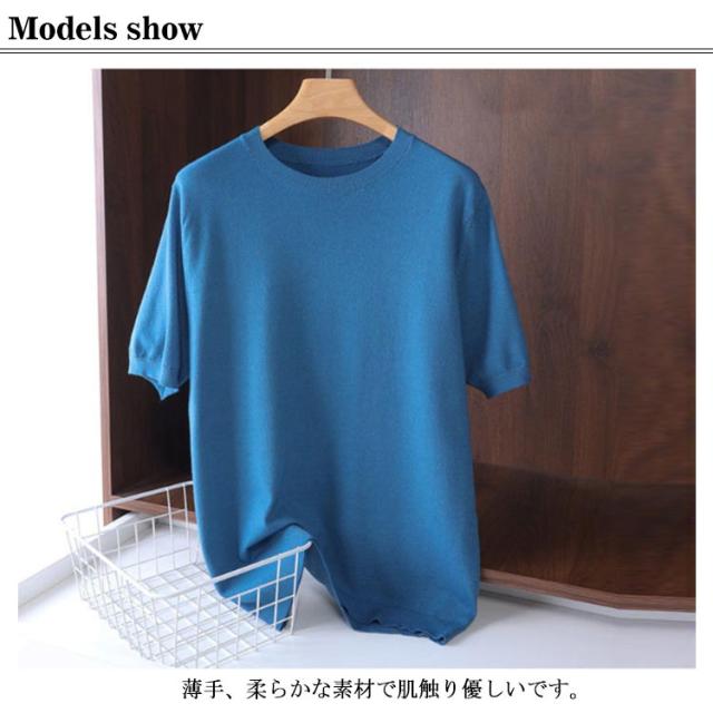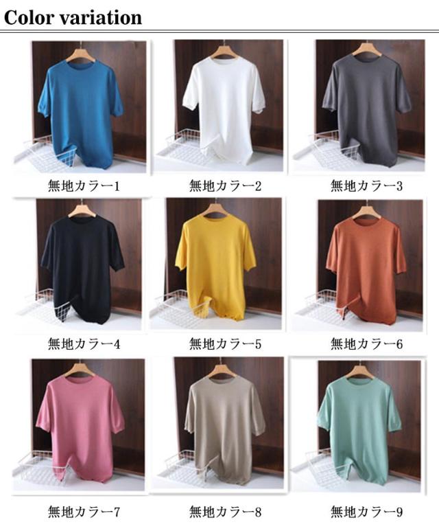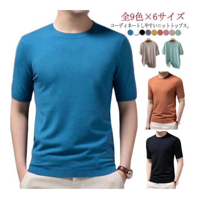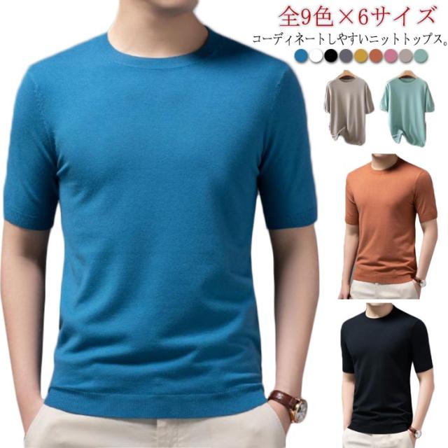 全9色×6サイズ!サマーニット メンズ 半袖 Tシャツ カットソー サマーセーター ニットセーター ニットTシャツ ゆったり プルーオーバー 着痩せ 丸襟 大きいサイズ 薄手 レイヤード トップス カジュアル おしゃれ 父の日 S M L XL 2XL 3XL