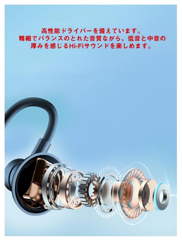 | 首掛け式 ワイヤレスイヤホン。 【Bluetooth 5.3搭載】Bluetooth5.3を搭載し、通信速度・通信範囲ともに飛躍的に向上いたしました。従来のBluetoothイヤホンの通信問題を改善し音飛びや途切れを最小限に抑えます。音飛び、音割れ、遅延等の状況を大幅に改善し、高速、安定、途切れのない接続体験が実感出来ます。 【高音質ドライバー搭載&ノイズキャンセリング機能】高性能ドライバーを備えています。精細でバランスのとれた音質ながら、低音と中音の厚みを感じるHi-Fiサウンドを楽しめます。ノイズキャンセリング機能も搭載、外からのノイズを削減し、マイクも内蔵されていますので、クリアな通話できます。スポーツだけでなく、在宅勤務でビデオ会議を頻繁にするビジネスパーソンにも役立ちます。 【マグネットデザイン】左右イヤホンにマグネットを搭載され、使用しない時は首に回したまま耳から外してそのままマグネット同志を付ければ首輪状になり落下防止につながります。ネックレスのように首に掛けることもできます。 【IPX7防水等級】IPX7防水規格に対応、急な雨や汗への耐久性もばっちりです!周囲の交通事情や人の気配を感じ取りながらも思いっきりスポーツを楽しめます! 【フィット感抜群】人間工学に基づき、耳の形にしっかり合わせて、フィット感が非常によく、耳の奥まで無理なく収まり、外れにくいです。長時間付けても重さを感じせず、移動中も落とす心配がなく使用可能、装着も簡単で圧迫感も一切ありません。 ?操作しやすい。 ボタン+:長押し(曲戻り) 一回クリック(音量+) ボタン-:長押し(次の曲) 一回クリック(音量-) 電源ボタン:オン/オフ(3秒長押し) 一時停止/再生(一回クリック) 応答/切る(一回クリック) Siri起動(1.5秒長押し) ?マグネット搭載!左右イヤホンにマグネットを搭載され、使用しない時は首に回したまま耳から外してそのままマグネット同志を付ければ首輪状になり落下防 止につながります。 ?振動提示機能!着信振動リマインダ電話を見逃すことはありません。 | |