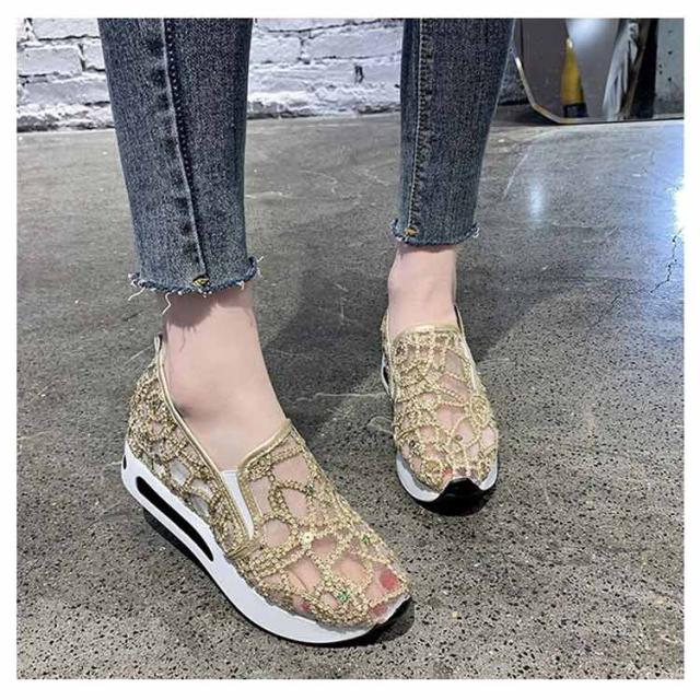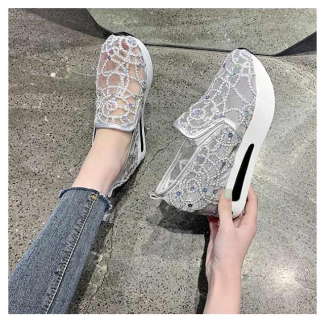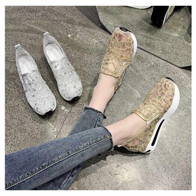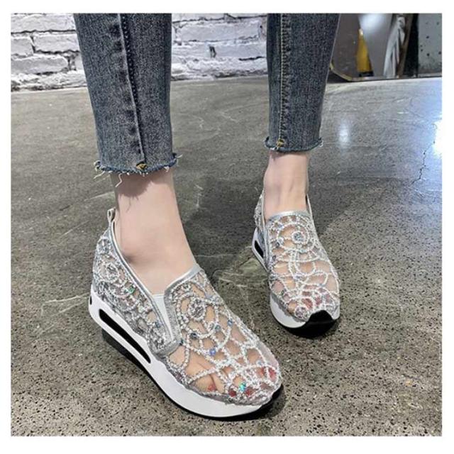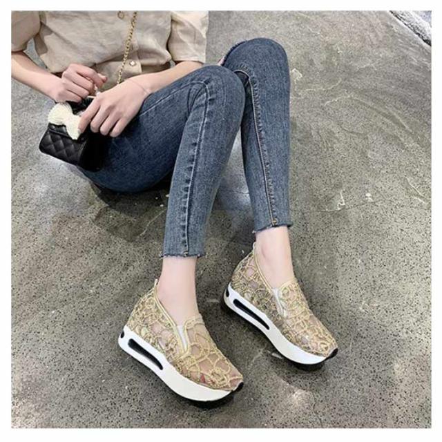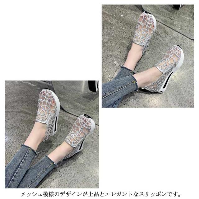 | 身長を少しでも高く見せたい女子必見の厚底靴♪ ☆履いた瞬間にスタイルUPが叶うシークレットシューズ♪ 大人女性にぴったり!履くだけでスタイルアップが叶うインヒールスニーカー♪ アッパーのキラキラが目を引くスニーカー。 メッシュ模様のデザインが上品とエレガントなスリッポンです。 メッシュで通気性も優れています。程よい厚底が美脚効果を発揮します。 アウトソールには滑り止め加工が施されているので、滑りやすい路面でも安心。 歩き疲れにくく歩きやすいローカットスリッポンです。 | |