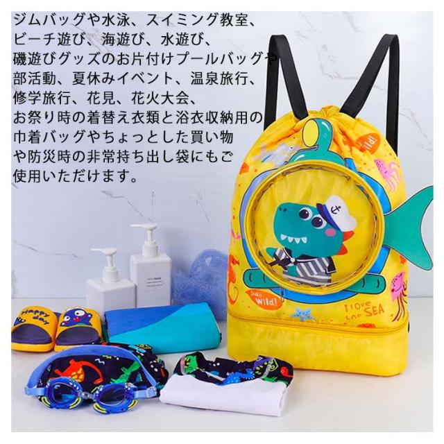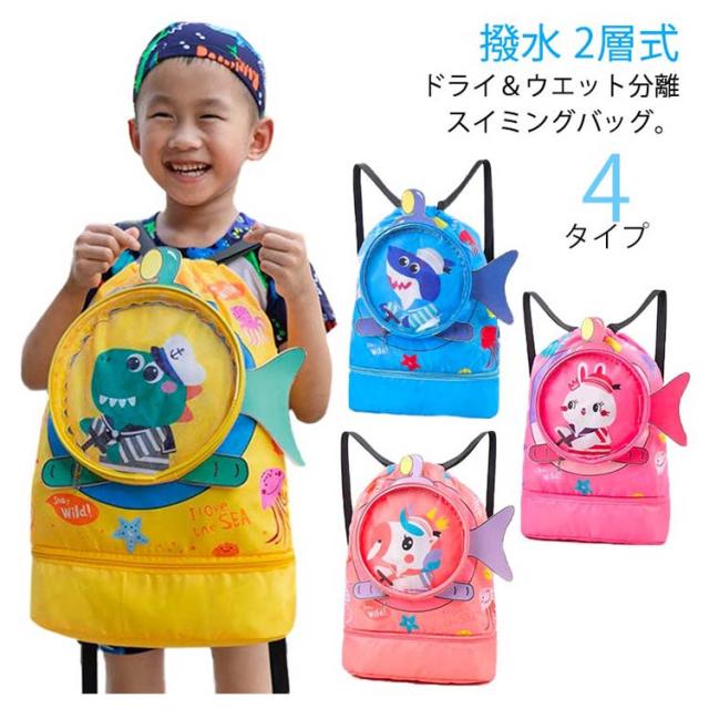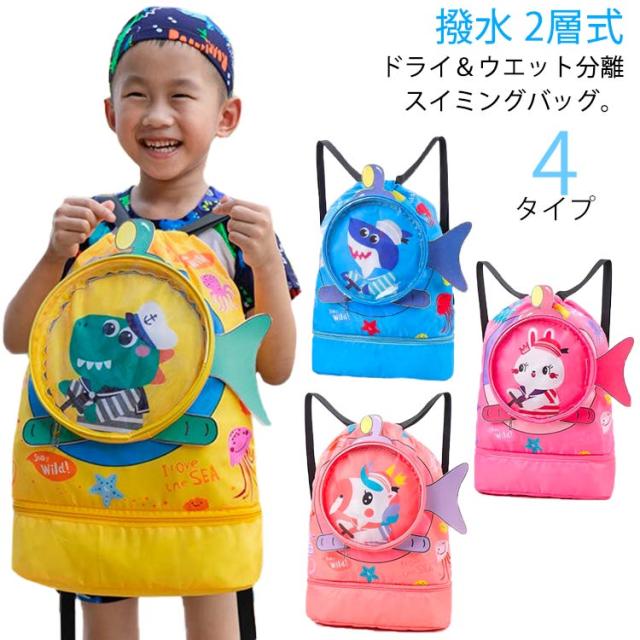 プールバッグ 女の子 ナップサック 送料無料 2層式 キッズ おしゃれ 子供 ビーチバッグ 男の子 スイムバッグ プール 水泳 スイミング バッグ 小学生 低学年 小学校 撥水 リュック 可愛い 動物