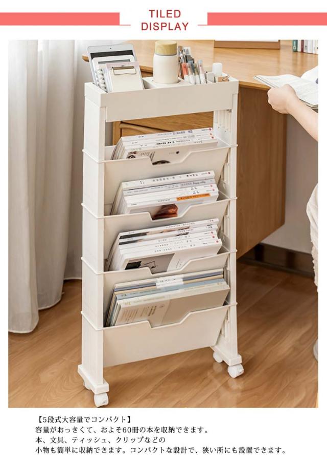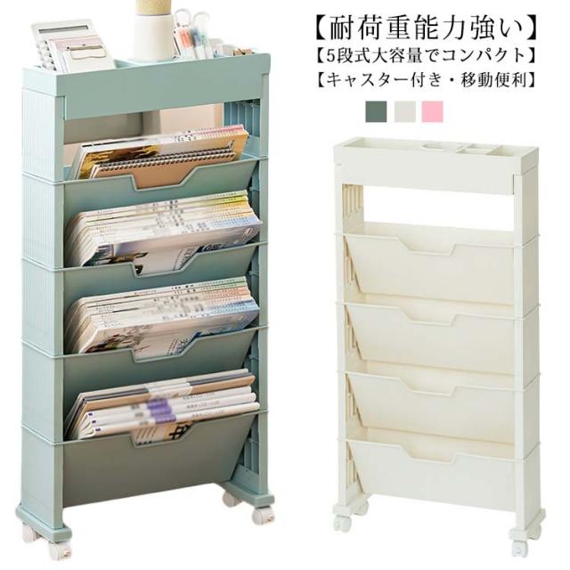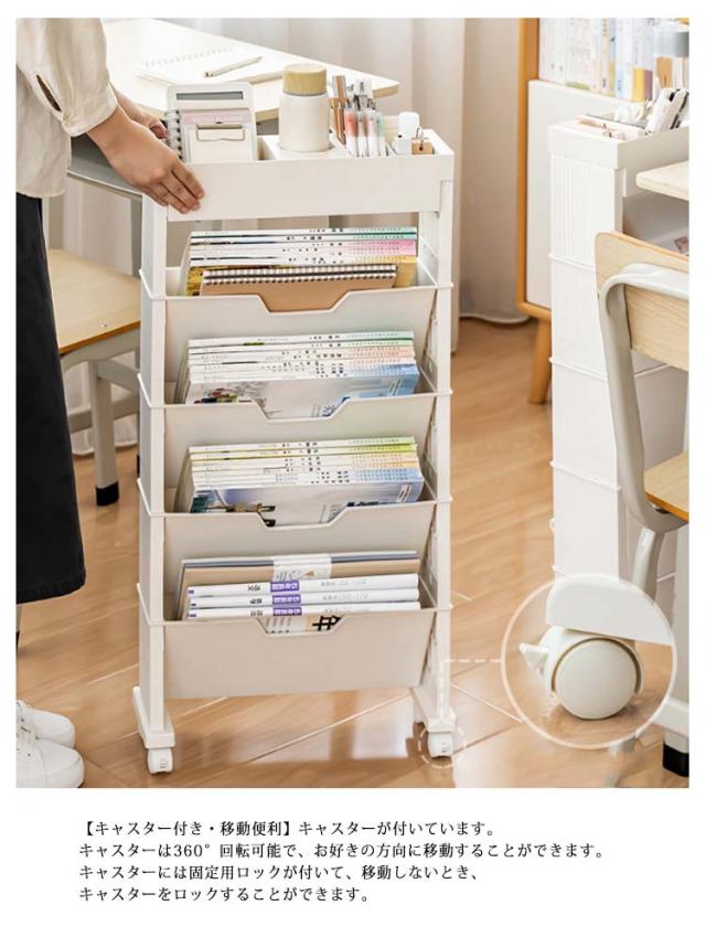 ファイルワゴン デスク下収納 マガジンラック 両面 収納 デスク下本棚 A4対応 本立て ファイル立て 収納ボックス 5段 6段 棚 小物収納 文房具収納 収納棚 雑誌収納 本収納 新聞収納 新聞ラック