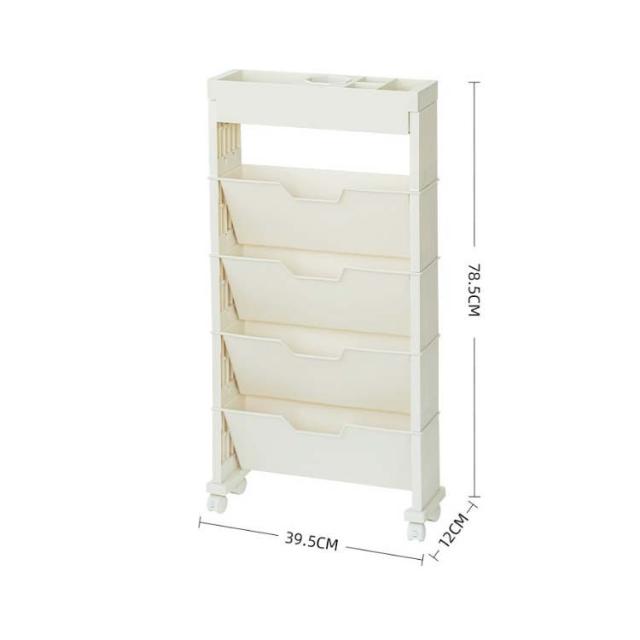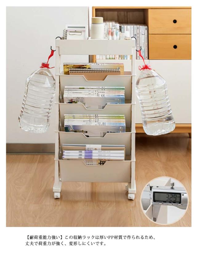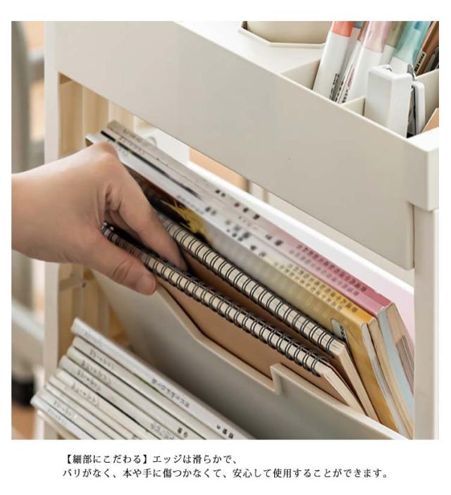 | 【5段式大容量でコンパクト】容量がおっきくて、およそ60冊の本を収納できます。本、文具、ティッシュ、クリップなどの小物も簡単に収納できます。コンパクトな設計で、狭い所にも設置できます。 【キャスター付き・移動便利】キャスターが付いています。キャスターは360°回転可能で、お好きの方向に移動することができます。キャスターには固定用ロックが付いて、移動しないとき、キャスターをロックすることができます。 【耐荷重能力強い】この収納ラックは厚いPP材質で作られるため、丈夫で荷重力が強く、変形しにくいです。 【細部にこだわる】エッジは滑らかで、バリがなく、本や手に傷つかなくて、安心して使用することができます。 【広い用途】このデスクサイドラックを使用して、教科書、ノート、鉛筆、定規、筆記用具、水筒などを分類し、よく整理することができます。小学校から中学校、高校、大学、仕事までにも適用します。さらに、絵棚、日常収納棚などとしても便利です。 | |