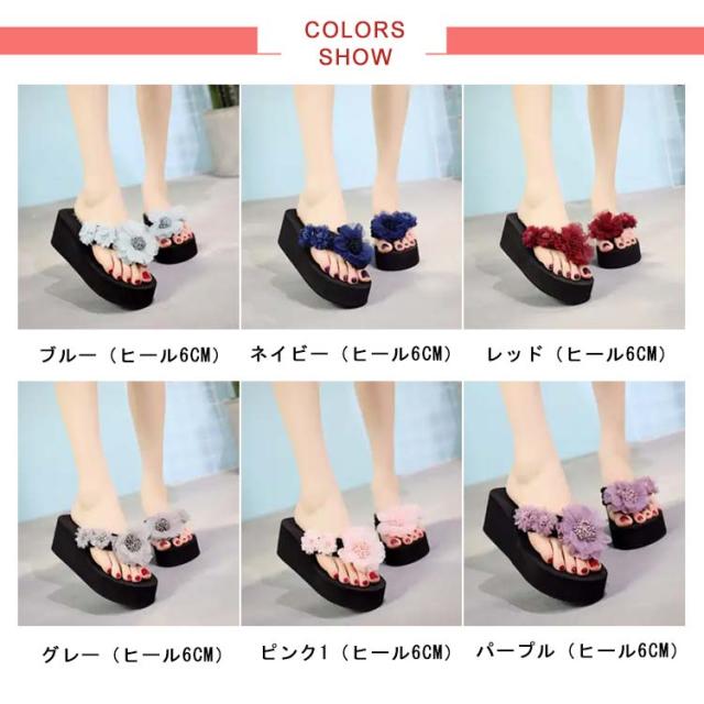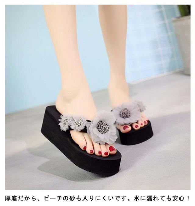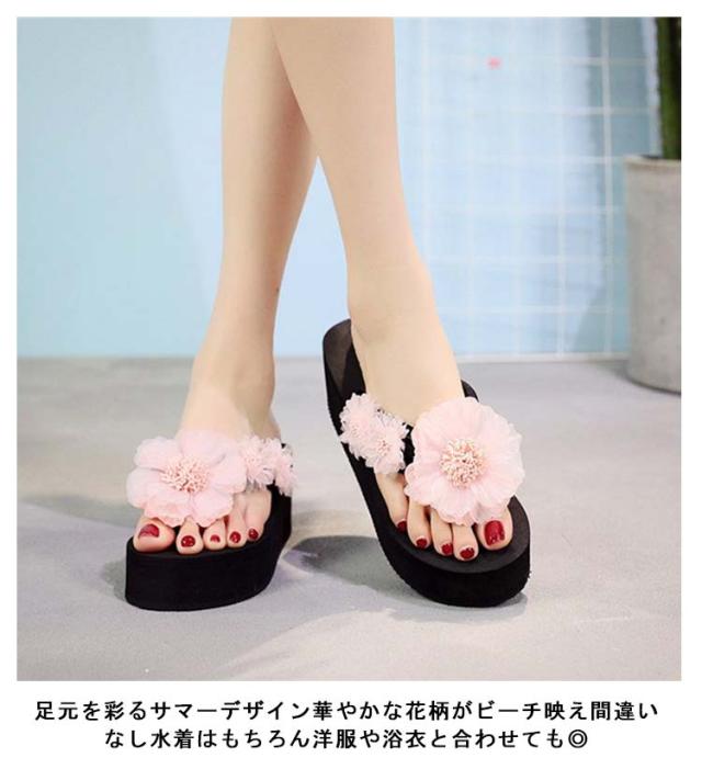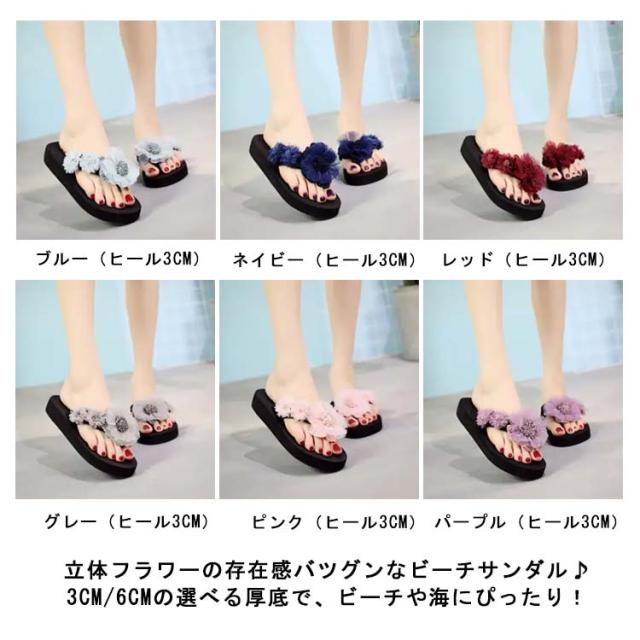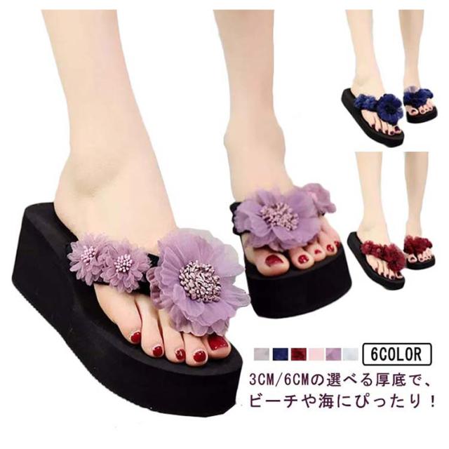 ビーチサンダル レディース 厚底 花柄 華やか レディース サンダル トングサンダル ウエッジソール 3cm/6cm ヒール フラット ぺたんこ 花 立体 フラワー大人可愛い 軽量 美脚 脚長効果 おしゃれ 海辺 ビーチ リゾート 旅行 歩きやすい 疲れない 普段履き 22.5-25cm