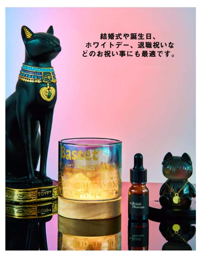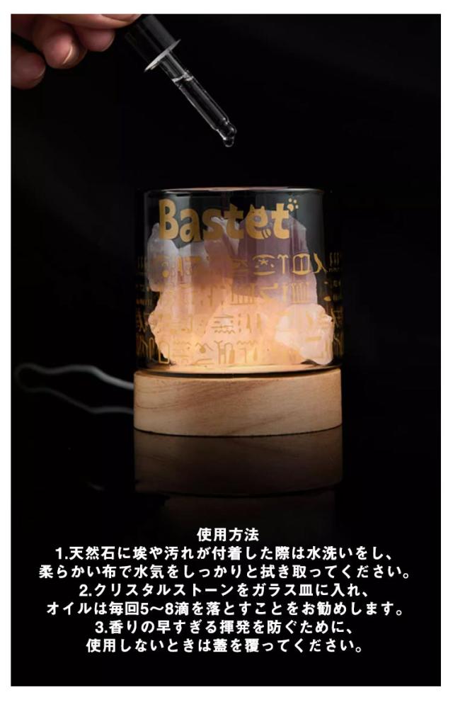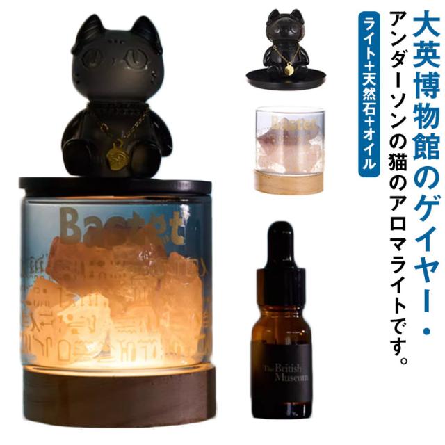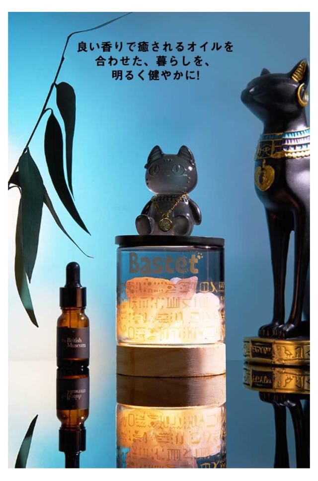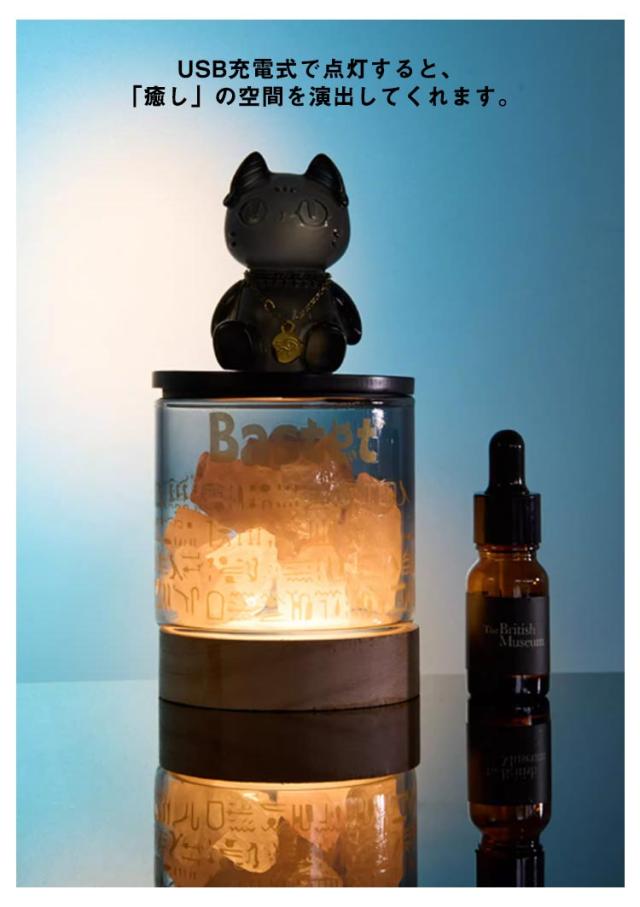 大英博物館 アロマランプ アロマライト ゲイヤー・アンダーソンの猫 ベッドサイド 蓋付き テーブルランプ ガラス 睡眠ライト 照明ライト 天然石 クリスタル USB充電式 台座付き オイル付き プレゼント インテリア