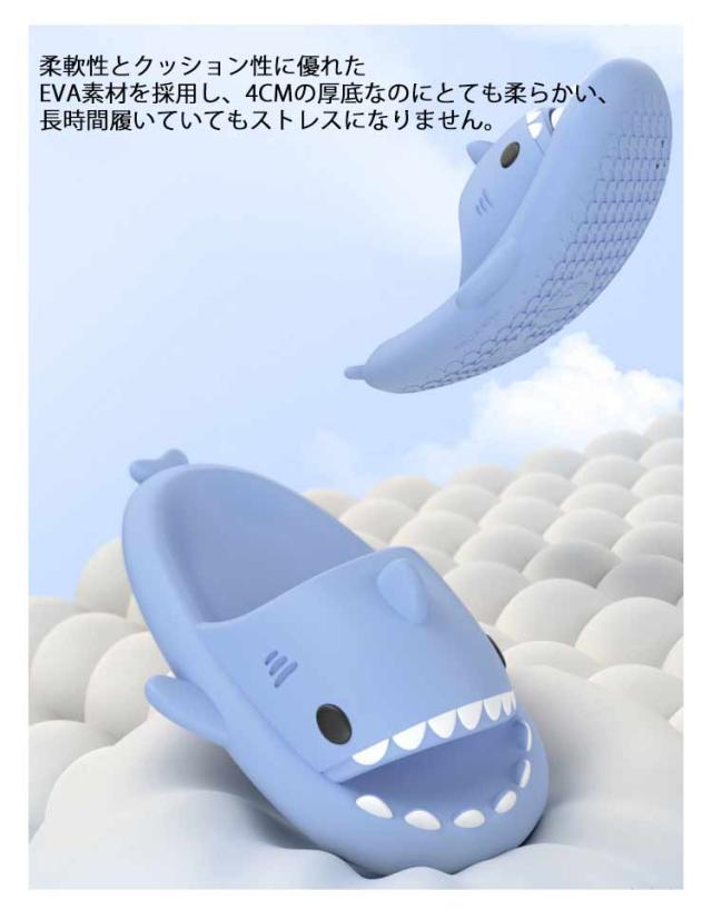 | お洒落可愛いサメデザインが人気、カラフル多色あり。 柔軟性とクッション性に優れたEVA素材を採用し、4CMの厚底なのにとても柔らかい、長時間履いていてもストレスになりません。 普段使いに最適なスリッパで、ソフトな履き心地と弾力性を兼ね備えています。 人間工学的デザイン、足の形に合わせてしっかり足をサポートします。 45°の急な斜面でも滑らないような靴底加工がされており、水で濡れているような場所でも安定して履くことができます。 室内使用に限らず、屋外にもサンダルとしての使用もできます。 | |
