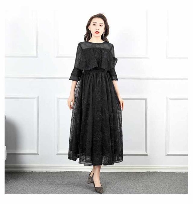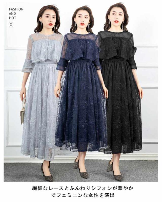 | 繊細なレースとふんわりシフォンが華やかでフェミニンな女性を演出 程よい透け感のレーススリーブは女性らしさを惹き出しながら気になる二の腕をお洒落にカバー◎ 袖部分は7部袖になっているので春秋は一枚でもOK! 首元はシンプル上品なラウンドネックでどんなアクセサリーも合わせやすいデザインです。 自然に広がるシルエットも品よくかわいさをプラス。 レイヤードデザインなので動くたびふわりと揺れチュールレース部分がチラ見えするディティールまでこだわった贅沢な1着です。 幅広い世代におすすめのオケージョンワンピースです。 | |