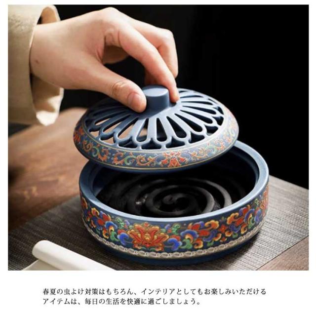 蚊取り線香入れ 蓋付き 陶器 蚊取り線香ホルダー 蚊取り線香 線香ケース セラミック製 お香立て 香炉 インテリア おしゃれ 置物 蚊遣り 蚊取り器 虫除け ケース 入れ 蚊遣り器 巻 蚊よけ お香トレイ アロマ アート 癒しグッズ お香トレイ アロマ アート 癒しグッズ