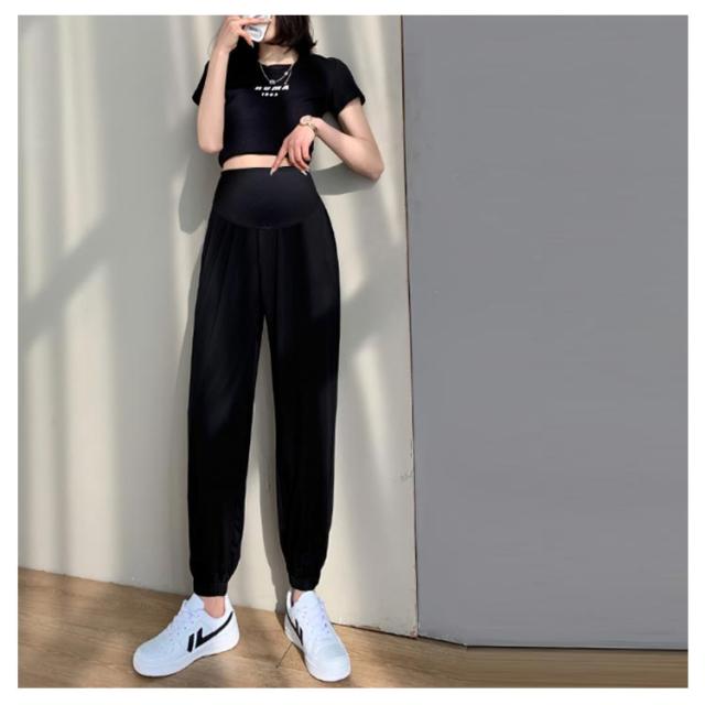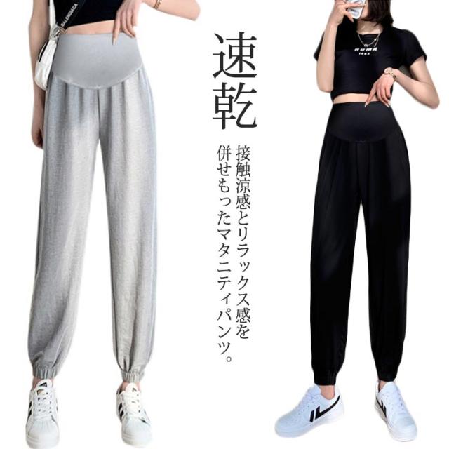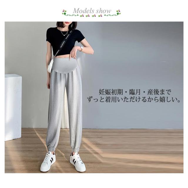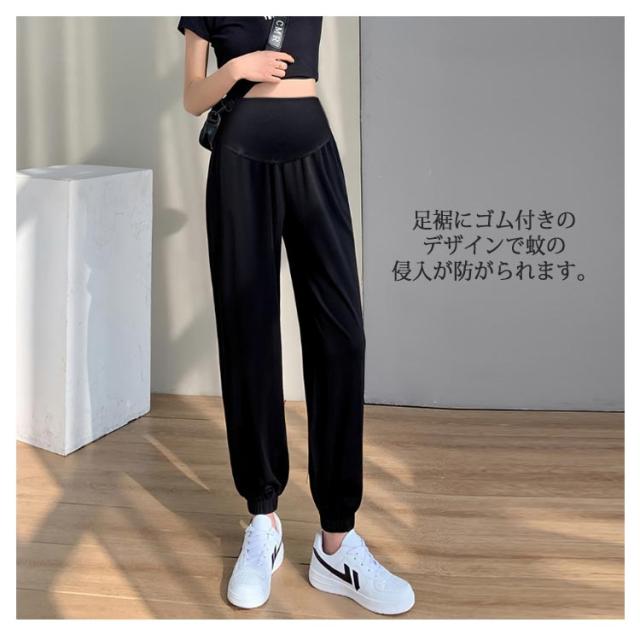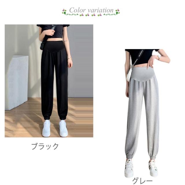 マタニティパンツ アイスシルク ジョガーパンツ 送料無料 マタニティ用 ロングパンツ 長ズボン マタニティウエア リラックス 冷感パンツ 産前産後兼用 ズボン カジュアル お出かけ 普段着 妊婦服 部屋着 春 夏 秋