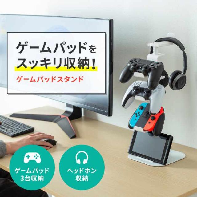 即納 代引不可 ゲームコントローラースタンド(ヘッドフォンホルダー付・ホワイト) ゲーム ヘッドセット サンワサプライ JY-STN1W
