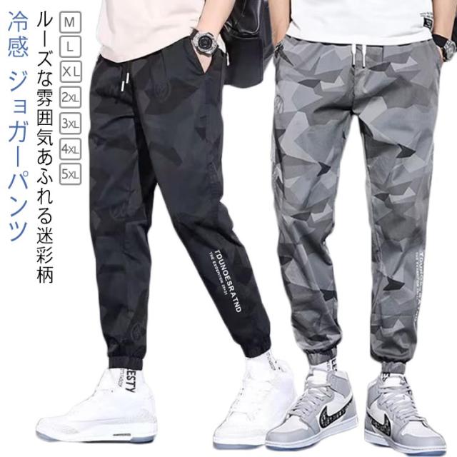 カモフラージュ 冷感パンツ 迷彩柄 パンツ メンズ 夏 ジョガーパンツ 冷感 送料無料 春夏 ジョガーパンツ 接触冷感 カジュアルパンツ アイスシルクパンツ アイスシルク ズボン イージーパンツ 作業ズボン サルエル