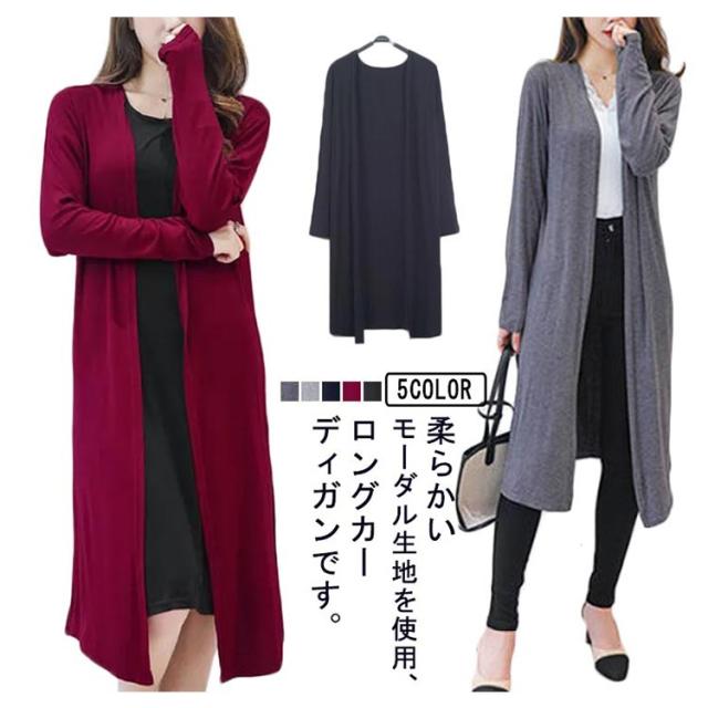 ロングカーディガン 春夏 レディース トップス カーディガン 薄手 くすみカラー カーディガン 長袖 羽織り 紫外線対策 スリット入り モダール素材 ゆったり カジュアル 通勤 通学 L XL 2XL