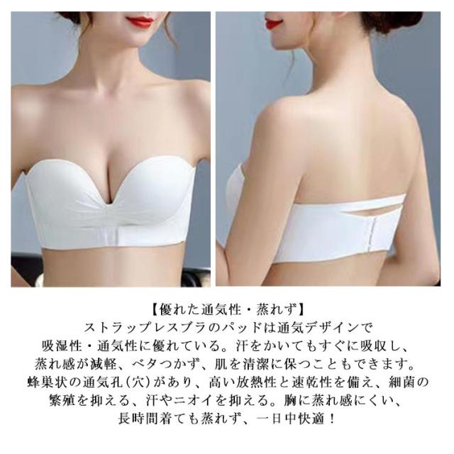 ストラップレスブラ 紐なしブラ 落ちない ずれない 三重滑り止め 盛れる 谷間 バストアップ チューブトップ ノンワイヤー ブラジャー 脇高 シームレスブラ 結婚式 オフショル インナー ブラ 美胸 美背 シンプル 無地 小胸 盛りブラ ブラ単品 送料無料