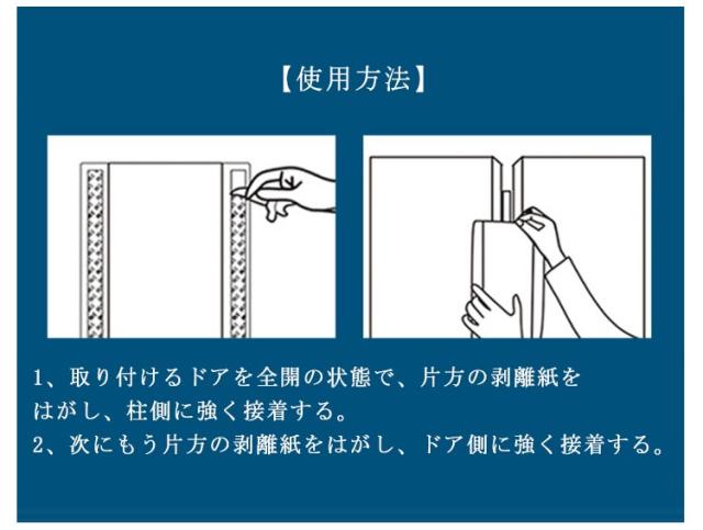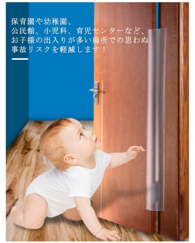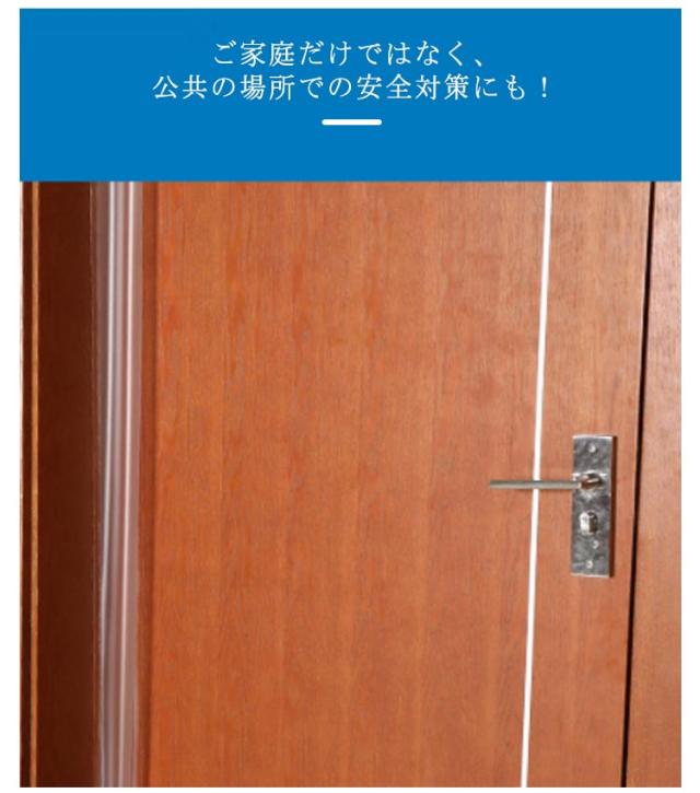 | 指はさみ防止対策・貼るだけ取付簡単 ドアへの指はさみ事故を防止するゆびストッパー 取り付けも簡単で、専用の両面テープで貼り付けるだけ。 透明なので目立たない! 剥がし易いから賃貸でも安心! ご家庭だけではなく、公共の場所での安全対策にも! 保育園や幼稚園、公民館、小児科、育児センターなど、お子様の出入りが多い場所での思わぬ事故リスクを軽減します! 【使用方法】 1、取り付けるドアを全開の状態で、片方の剥離紙をはがし、柱側に強く接着する。 2、次にもう片方の剥離紙をはがし、ドア側に強く接着する。 | |