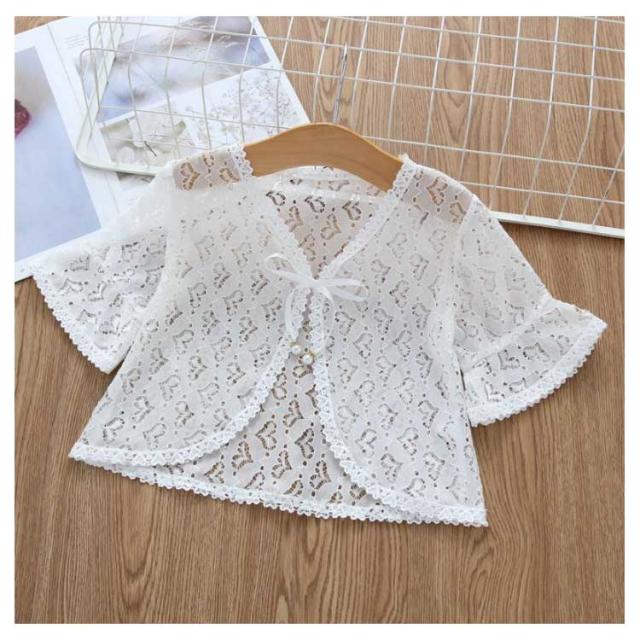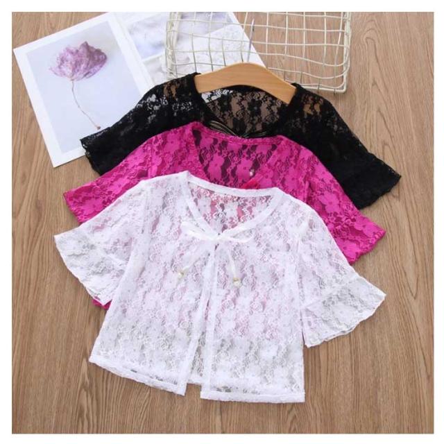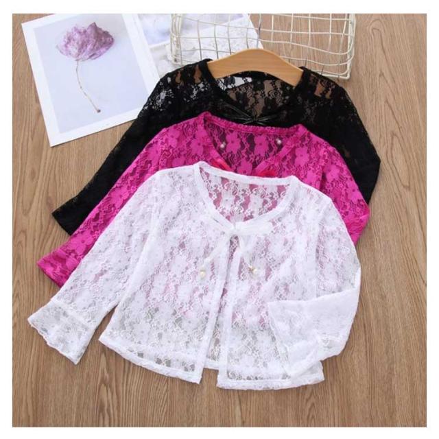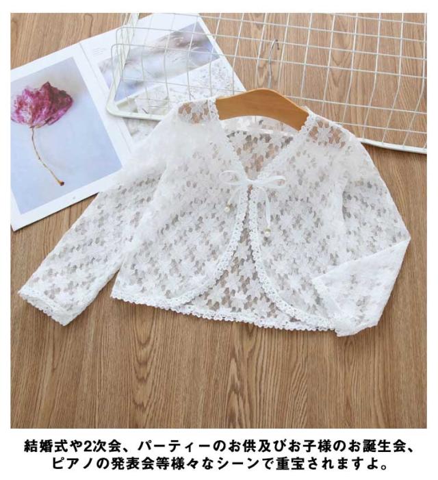 レースボレロ カーディガン キッズ 長袖 半袖 透かし UVカット 透け感 薄手 羽織り チュール 女の子 韓国子供服 冷房対策 日焼け止め こども服 可愛い リゾート フォーマル 無地 春 夏 通園 通学 プレゼント トップス M L XL 2XL 送料無料