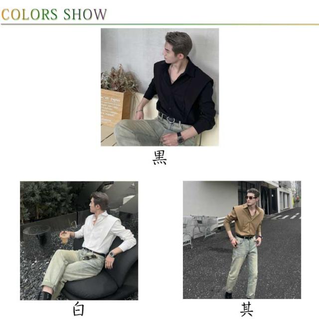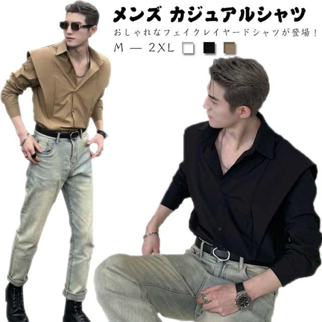 フェイクレイヤード シャツ メンズ カジュアルシャツ 春夏 長袖シャツ 羽織り レトロ 大きいサイズ 開襟シャツ 体型カバー 韓国ファション ゆったり 大きいサイズ かっこいい M L XL 2XL