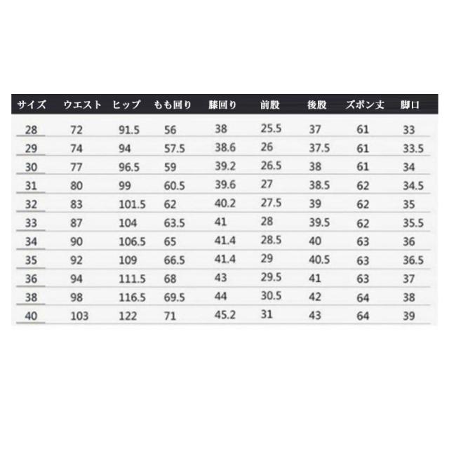 | サイズ | 28 29 30 31 32 33 34 36 38 40 |