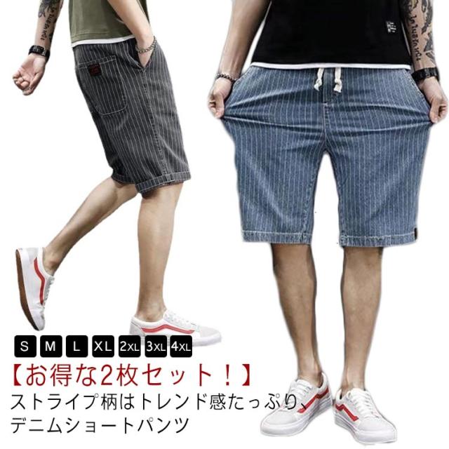 ショートパンツ メンズ デニムパンツ 2枚組 おしゃれ ストライプ ハーフパンツ ジーンズ 短パン ひざ下 膝下 半パンツ 五分丈 男性 ボトムス ウェストゴム カジュアル ストレッチ 薄手 速乾 超軽量 快適 お洒落 ゆったり カジュアル ブラック ブルー 大きいサイズ 送料無料