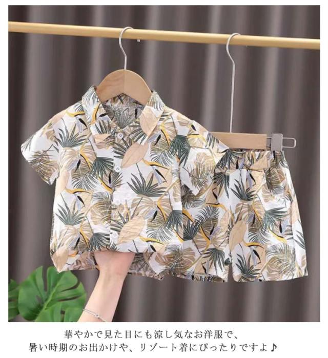 キッズ アロハシャツ セットアップ 上下セット 半袖シャツ シャツ 子供服 半袖 ハーフパンツ 男の子 女の子 男児 女児 こども服 子ども服 ベビー服 ジュニア カジュアル トップス ボトムス ハワイアン リゾート ウエストゴム 幼稚園 小学生 中学生 春 夏 送料無料