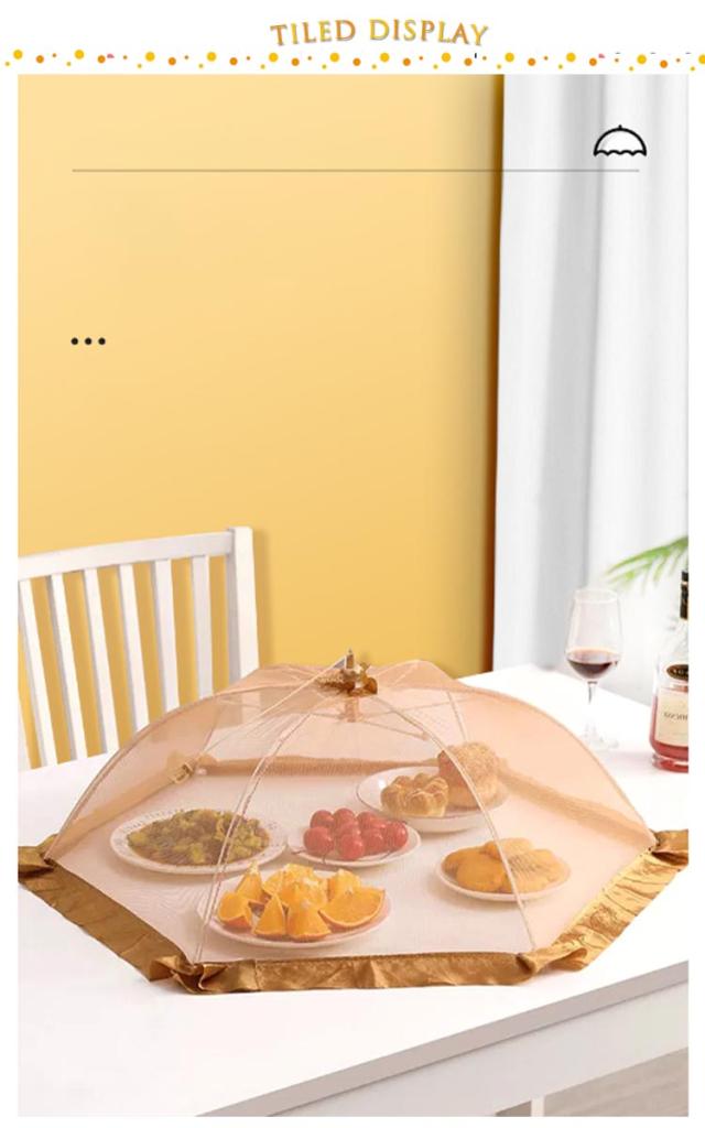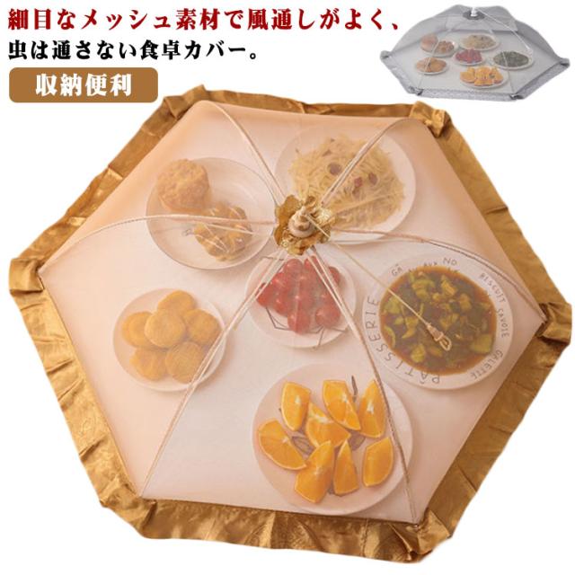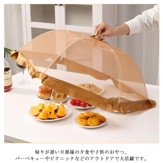 | 細目なメッシュ素材で風通しがよく、虫は通さない食卓カバー。 メッシュ素材だから熱がこもらず、オーブン料理の粗熱を取る際や用意したお食事やお菓子、お茶などをほこりや乾燥、夏場の虫などから守るにも便利です。 埃よけカバーは水洗い可能で、手軽で、優れた対摩耗性で、長く時間に繰り返し使用できます。通気性が優れます、ハエなど虫が多いの夏日に最適、食品の新鮮度を保ちながら虫よけ。 帰りが遅い旦那様の夕食や子供のおやつ、バーベキューやピクニックなどのアウトドアで大活躍です。 傘のような骨組み構造になっているので、簡単に開閉をすることができます。コンパクトに折り畳むことができるので、持ち運びも収納も便利です。 | |
