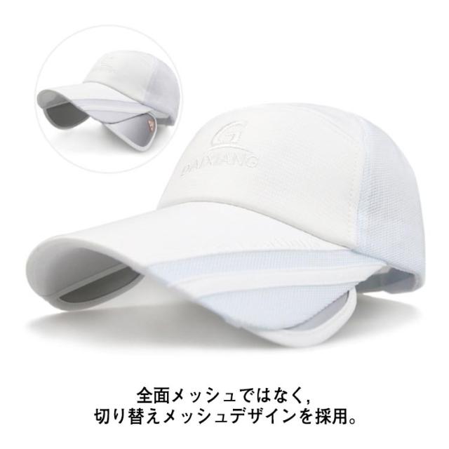メッシュキャップ ゴルフキャップ スポーツキャップ ランニングキャップ メンズ レディース 帽子 キャップ メッシュ つば長 2WAY UVカット 熱中症対策グッズ 日焼け防止 紫外線対策 大きいサイズ つば長