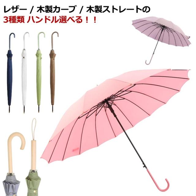 雨傘 16本骨 レディース メンズ 軽量 軽い 細い 長傘 雨傘 長傘 ワンタッチジャンプ式 雨傘 日傘 高級感ある色味 軽量 レザーハンドル 木ハンドル 木製 ハンドル 撥水 耐久 頑丈 抗風 豪雨対策 男女兼用 上品 ジャンプ式