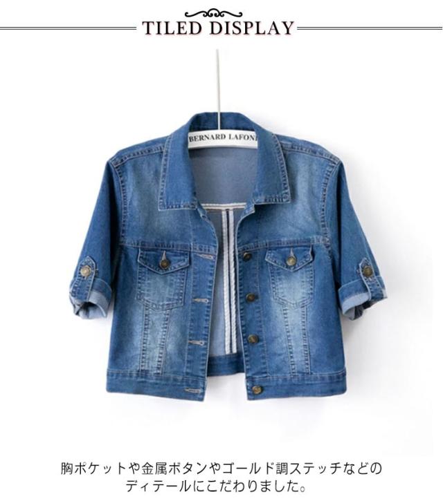 送料無料 半袖デニムジャケット レディース デニムポレロ デニムジャケット ショート デニムジャケット カジュアルジャケット ショートジャケット 半袖 Gジャン ショート丈 デニム ライトアウター 羽織り 半袖 五分袖 春 夏 秋