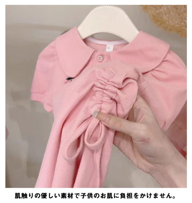 夏ワンピース チェリー 刺繍 女の子 ワンピース 半袖 丸襟 ポロシャツ襟 ポロシャツ ワンピース フレアワンピース 子供ワンピース キッズ ワンピース 夏 ベビー ワンピース 女児 ガールズ 子供ドレス 子供服 フォーマル 入園式 発表会 送料無料