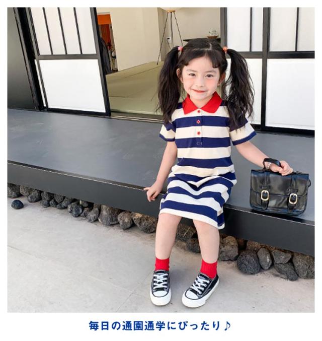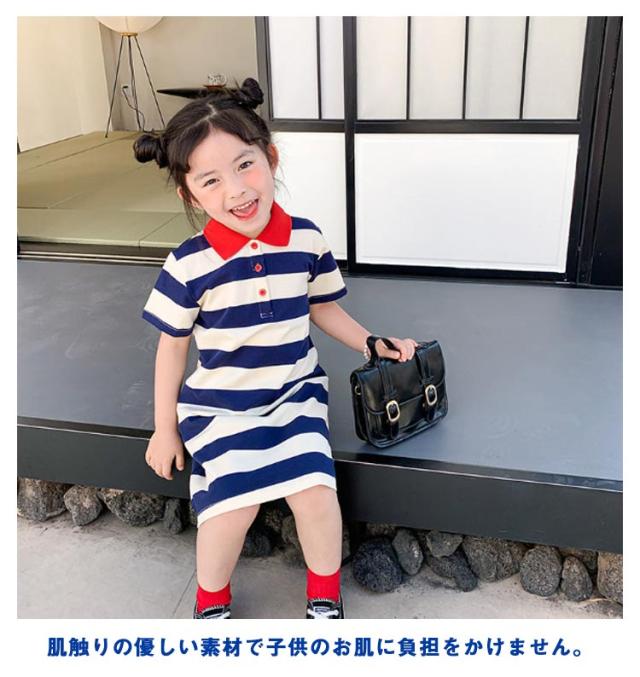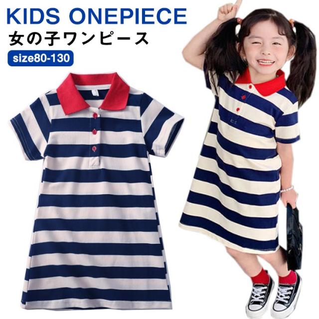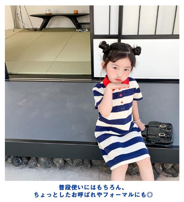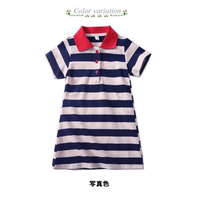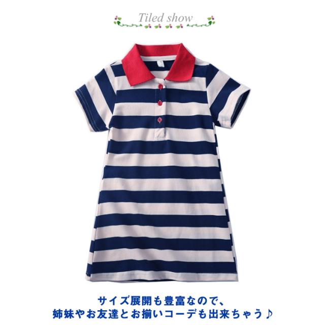 マーリン風 ボーダー柄 ワンピース Tシャツワンピース 夏ワンピース 女の子 ワンピース 半袖 ポロシャツ襟 ポロシャツ ワンピース フレアワンピース 子供ワンピース キッズ ワンピース 夏 送料無料