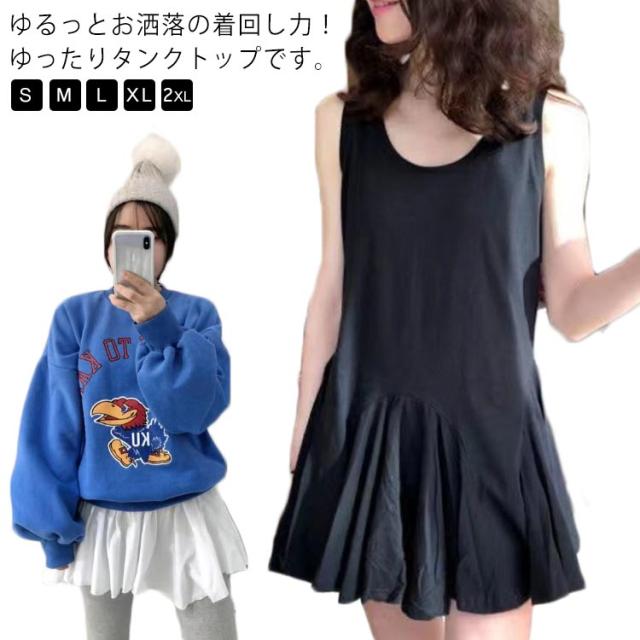 レイヤードタンクトップ レディース ロング インナー パーカーインナー トップス ロングタンクトップ ノースリーブ キャミソール 重ね着 チュニックワンピース アシンメトリー 春 夏 秋 カジュアル お尻が隠れる 大きいサイズ S M L XL 2XL