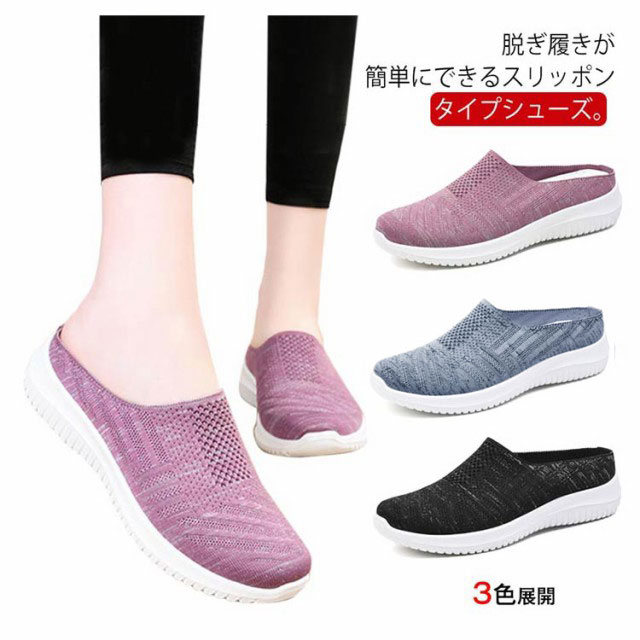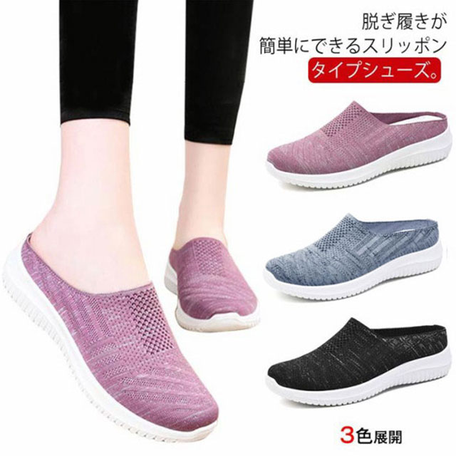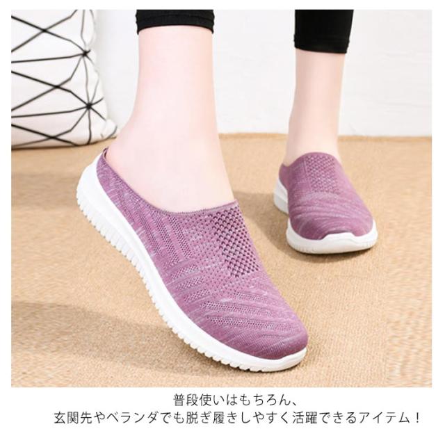 スリッポン レディース かかとなし 送料無料 スリッポンスニーカー 母の日 靴 ニットスリッポン 軽量 軽い ウォキングシューズ ナースシューズ 紐なし 看護師 お母さん 履きやすい サボ サンダル かかとなしシューズ 中高齢者靴 敬老の日