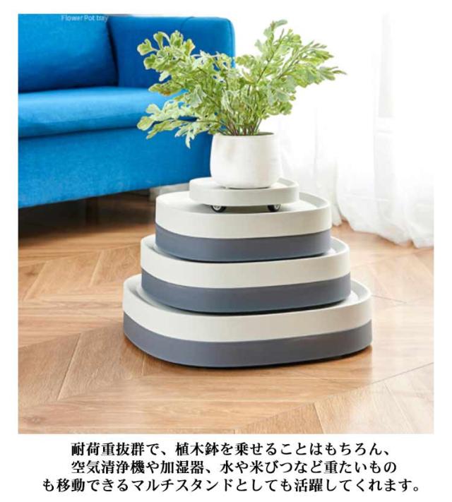 隠しキャスター付き鉢皿 台車 キャスター付き 鉢台 鉢皿 受皿 受け皿 トレイ トレー プレート 鉢植え台 プランター 観葉植物 鉢植え 植木鉢 スタンド フラワーベース コロコロ付き キャスター台 花台 オフホワイト グレー モダン インテリア